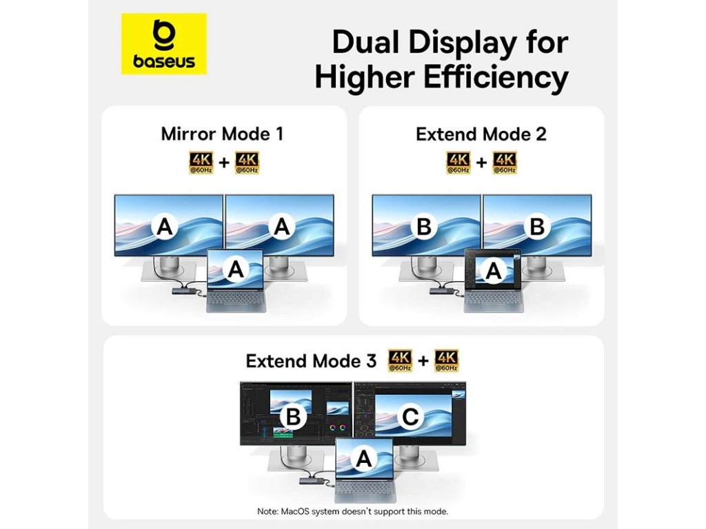 Rozšíření pracovní plochy díky podpoře dvou monitorůTato dokovací stanice ti umožní připojit dva externí monitory současně, což výrazně zlepší přehlednost při práci a zvýší tvoji produktivitu – ideální pro grafiky, programátory i běžné uživatele.