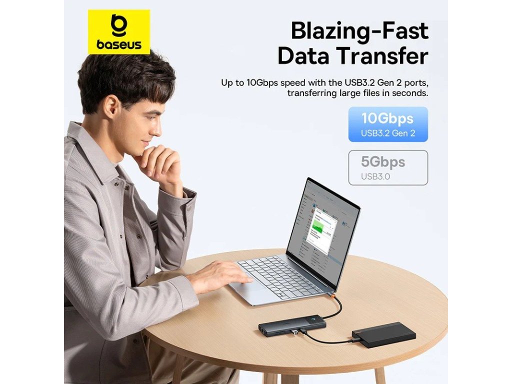 USB-C a USB-A 3.2 porty podporují přenosové rychlosti až 10 Gb/s, takže velké soubory, videa nebo zálohy přeneseš během několika vteřin bez čekání.