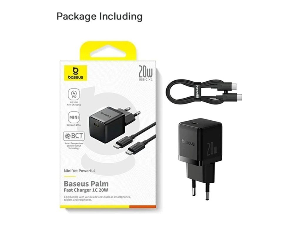 Baseus Palm Fast Nabíječka USB-C 20W + Datový Kabel USB-C/USB-C 1m Black