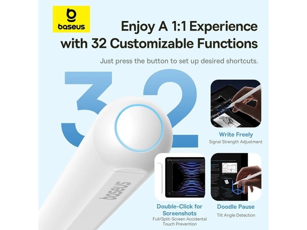 Baseus Stylus Pen Smooth Writing 3 je aktivní stylus navržený pro iPady, který nabízí plynulé a přesné psaní bez prodlev.Podporuje citlivost na tlak i náklon, což umožňuje přirozené a detailní kreslení i psaní.