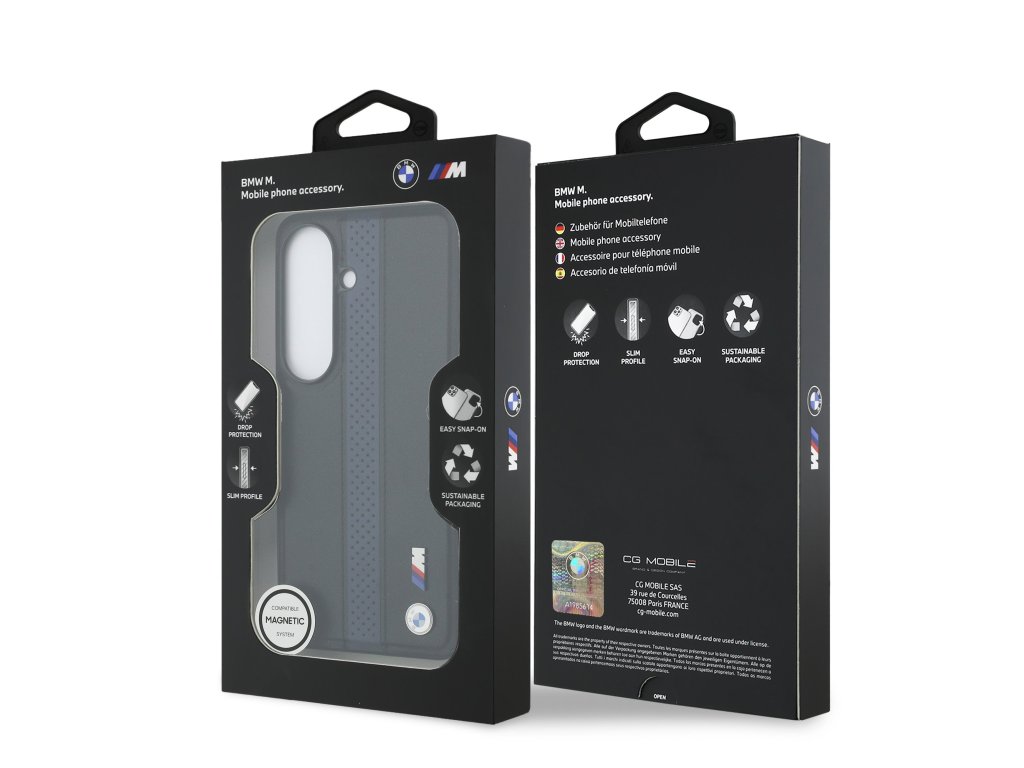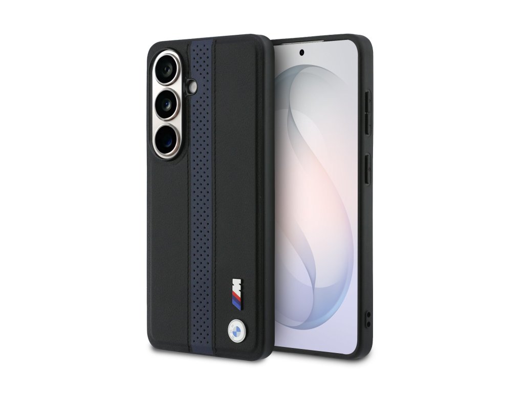 BMW M PU Leather Perforated Stripes and Metal Logo Magnetic Zadní Kryt pro Samsung Galaxy S26 Blue