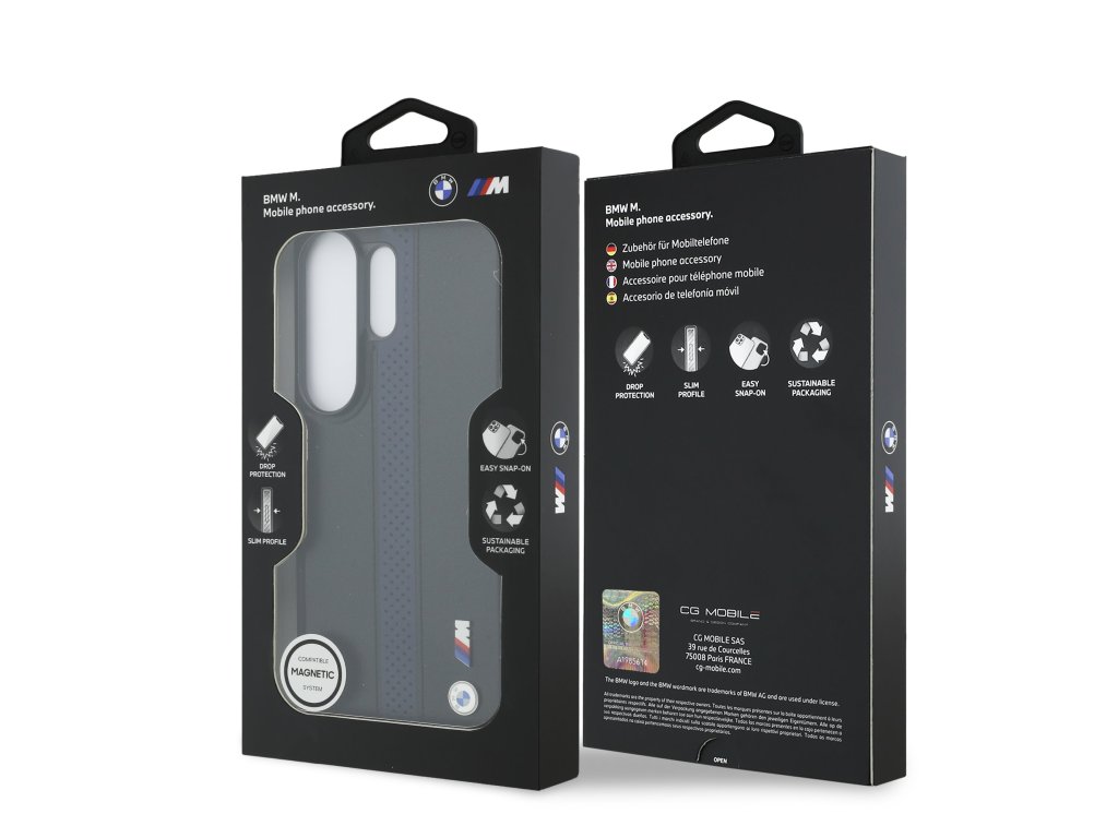 BMW M PU Leather Perforated Stripes and Metal Logo Magnetic je vyroben z kvalitního PU materiálu, které zajišťuje dlouhou životnost a precizní sednutí na váš telefon.