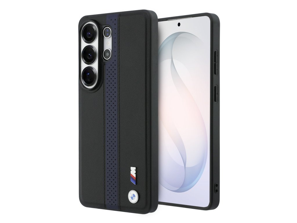 BMW M PU Leather Perforated Stripes and Metal Logo Magnetic Zadní Kryt pro Samsung Galaxy S26 Ultra Blue