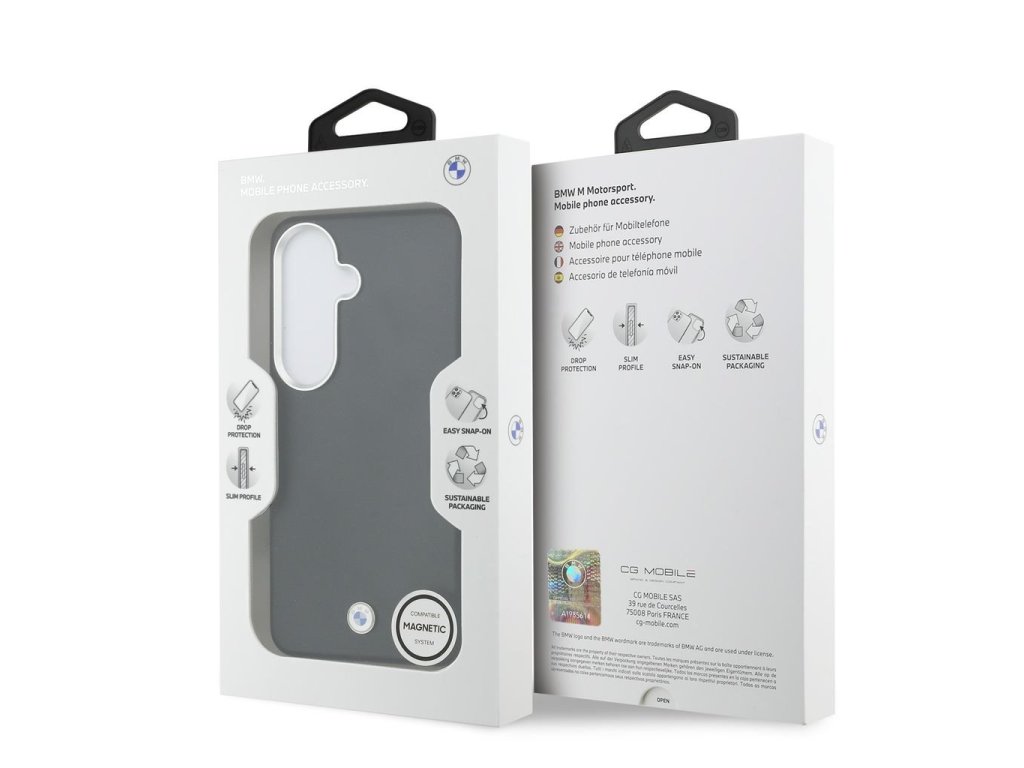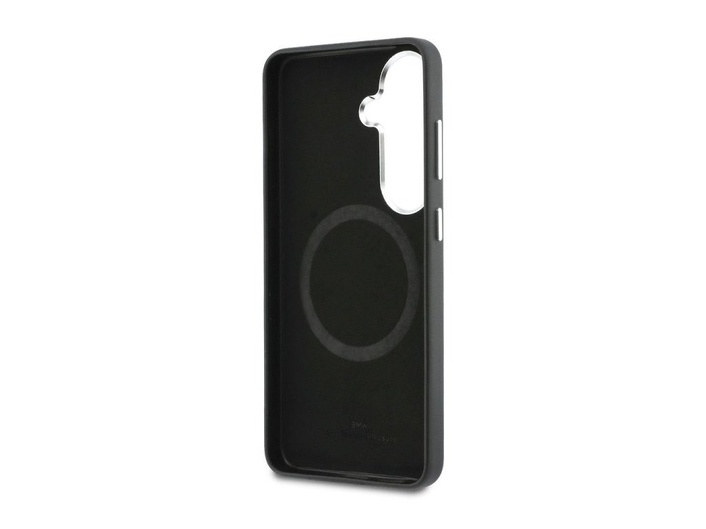 BMW Signature PU Leather Metal Logo Magnetic Zadní kryt pro Samsung Galaxy S26+ Black