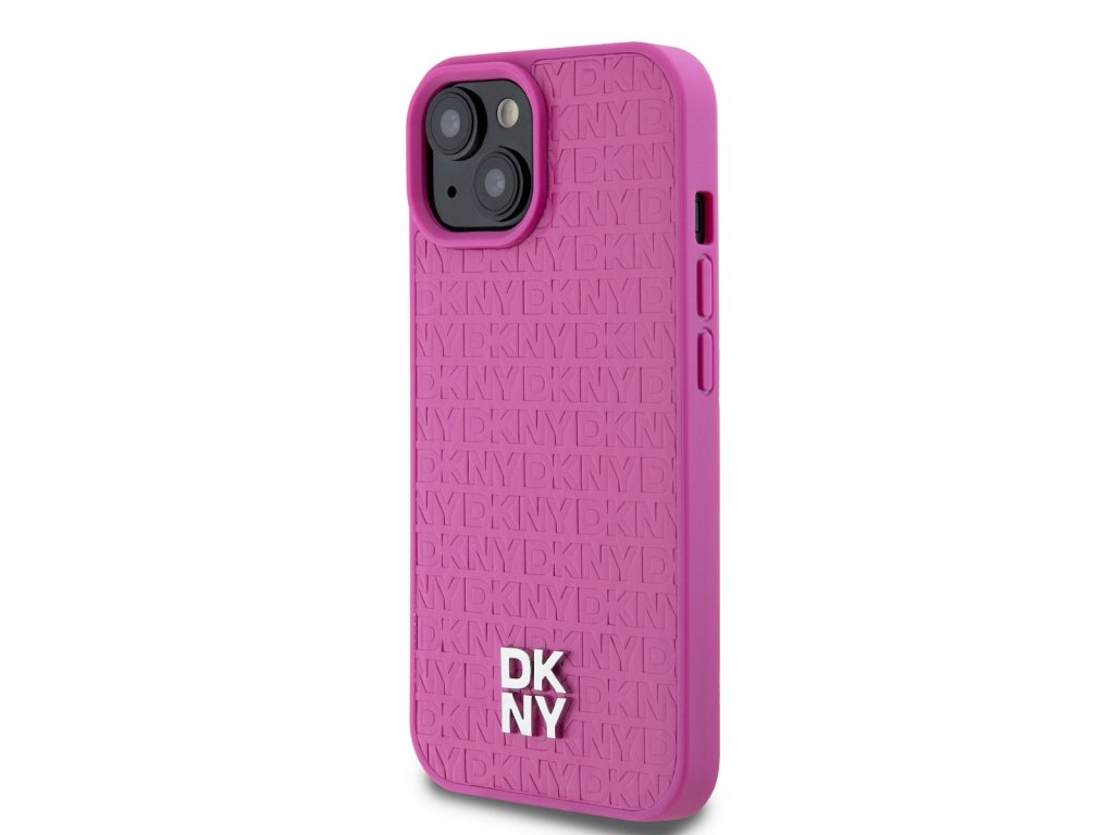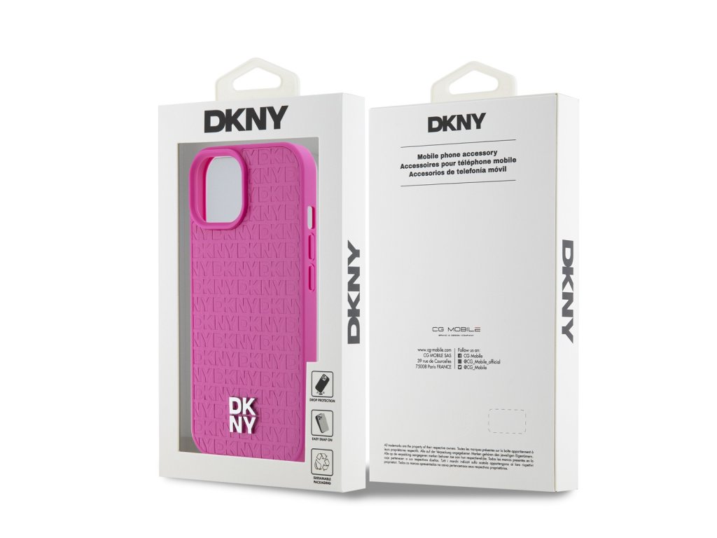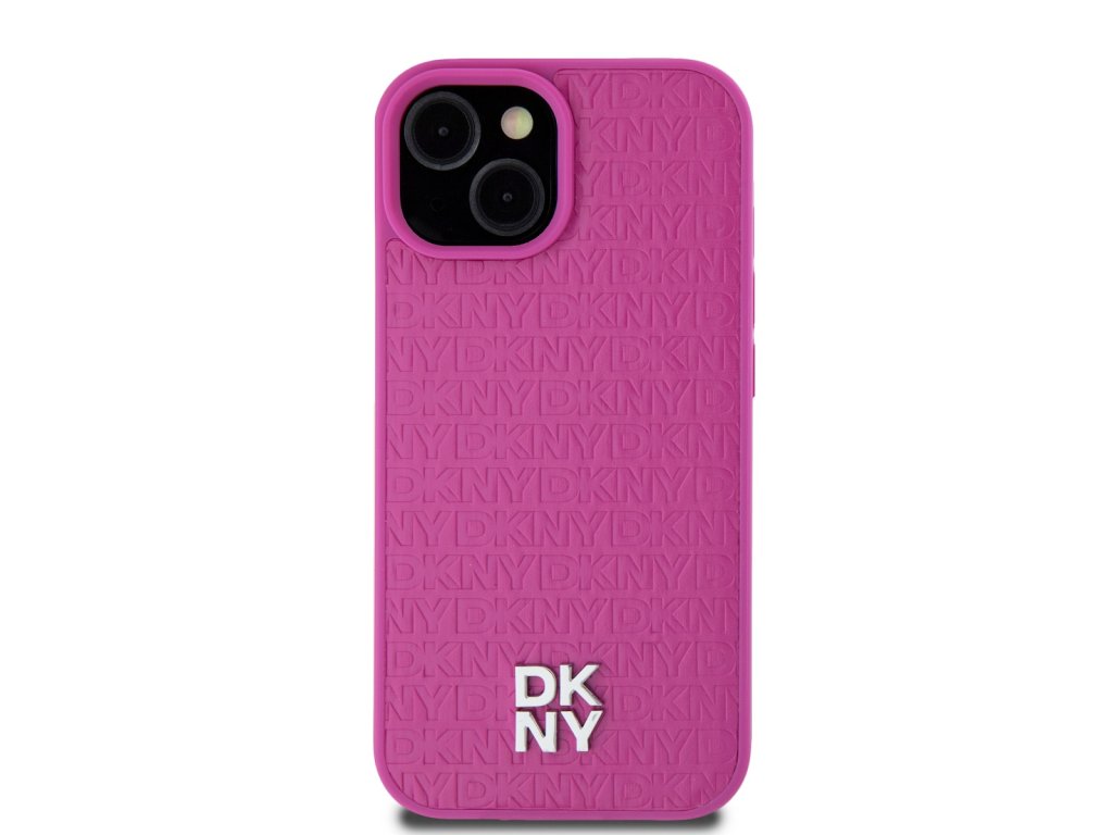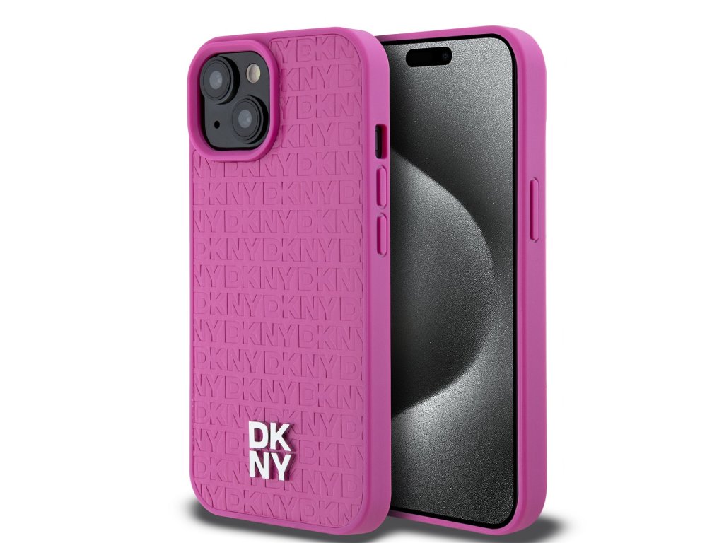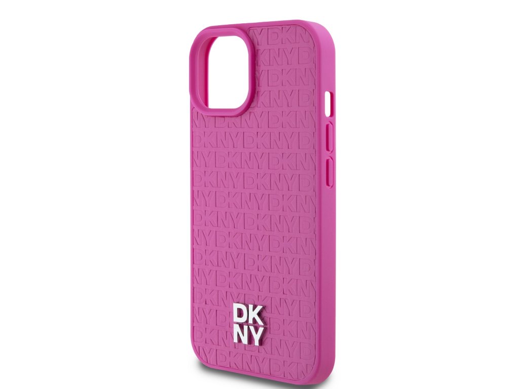 DKNY PU Leather Repeat Pattern Stack Logo Magsafe Zadní Kryt pro iPhone 15 Pink