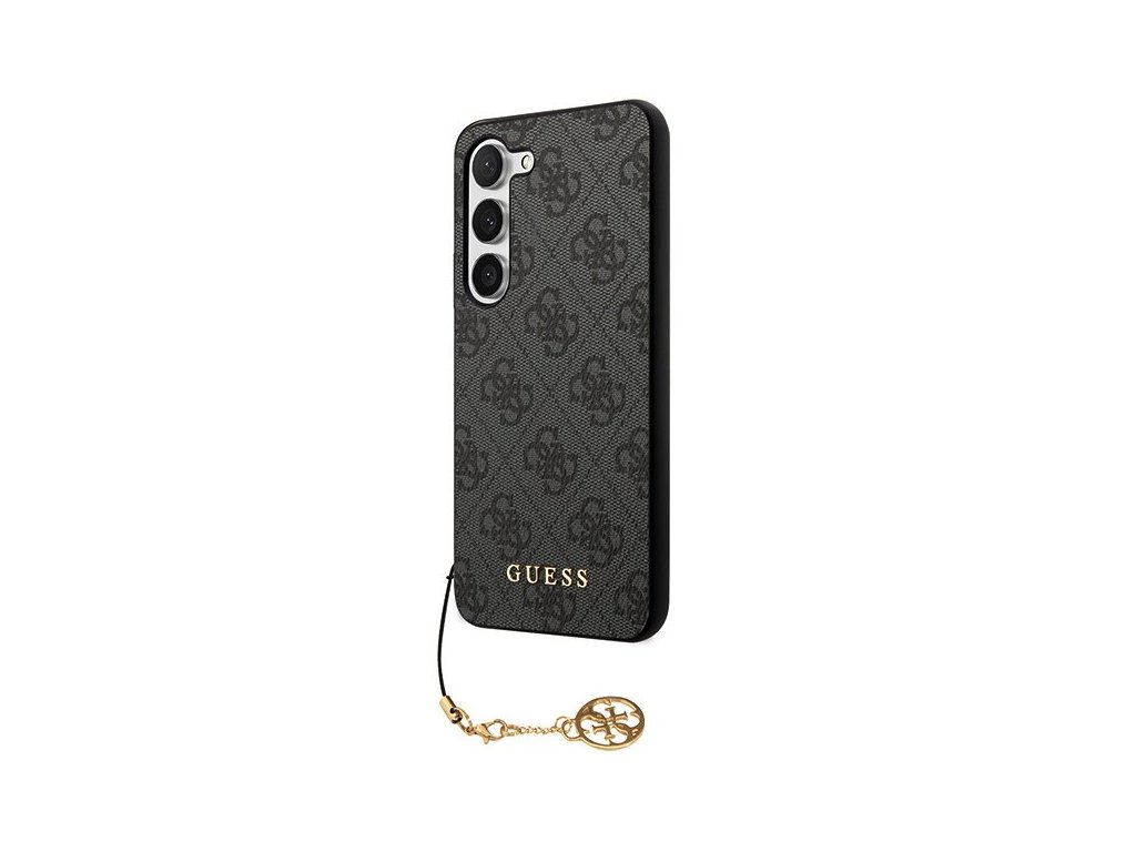 Guess 4G Charms prémiový ochranný kryt telefonu v kombinaci zadní strany s PU kůží s motivem Guess, pružnými PU boky a atraktivním přívěskem.Boky krytu jsou pružné a skvěle chrání telefon při nechtěném pádu.