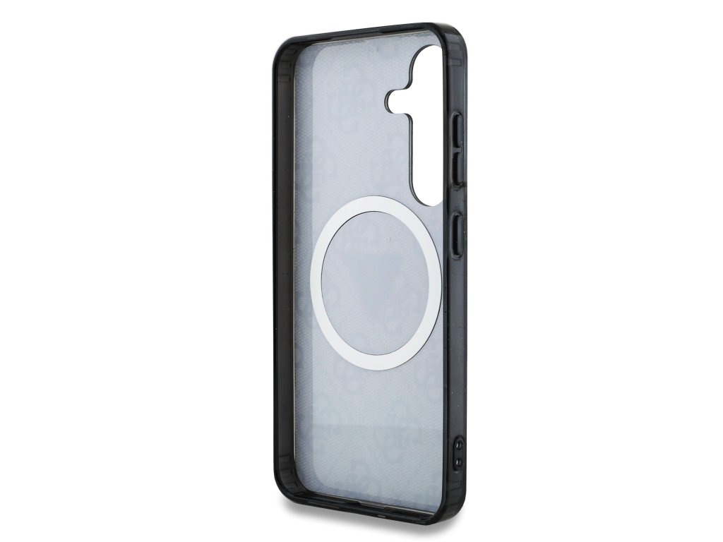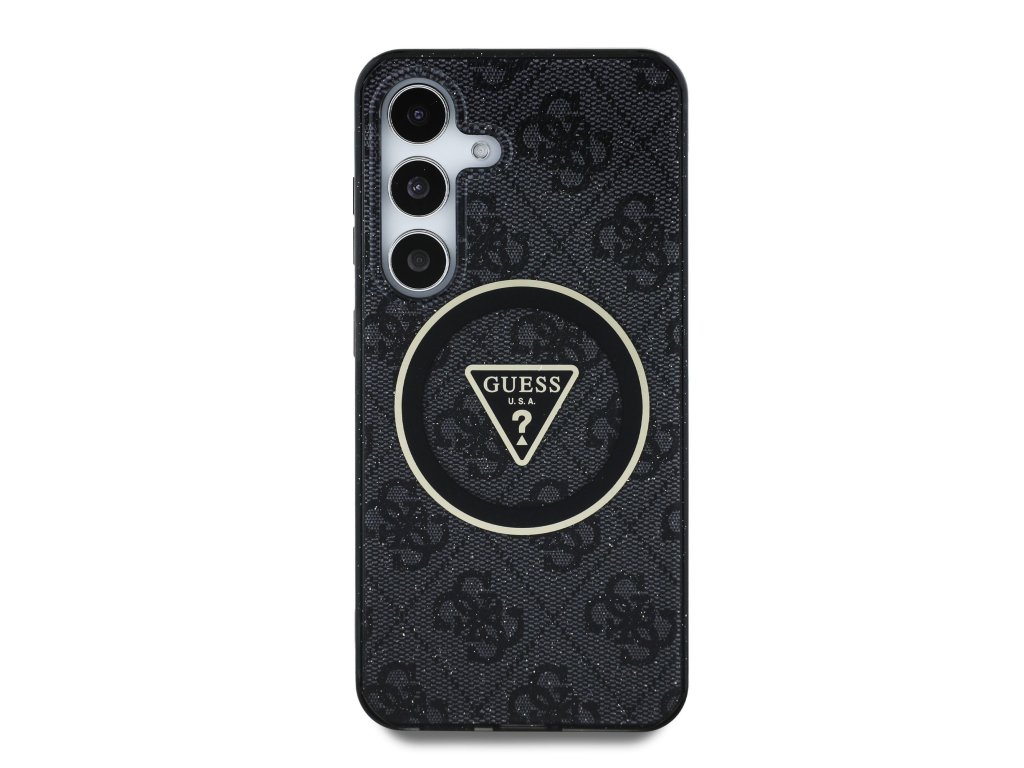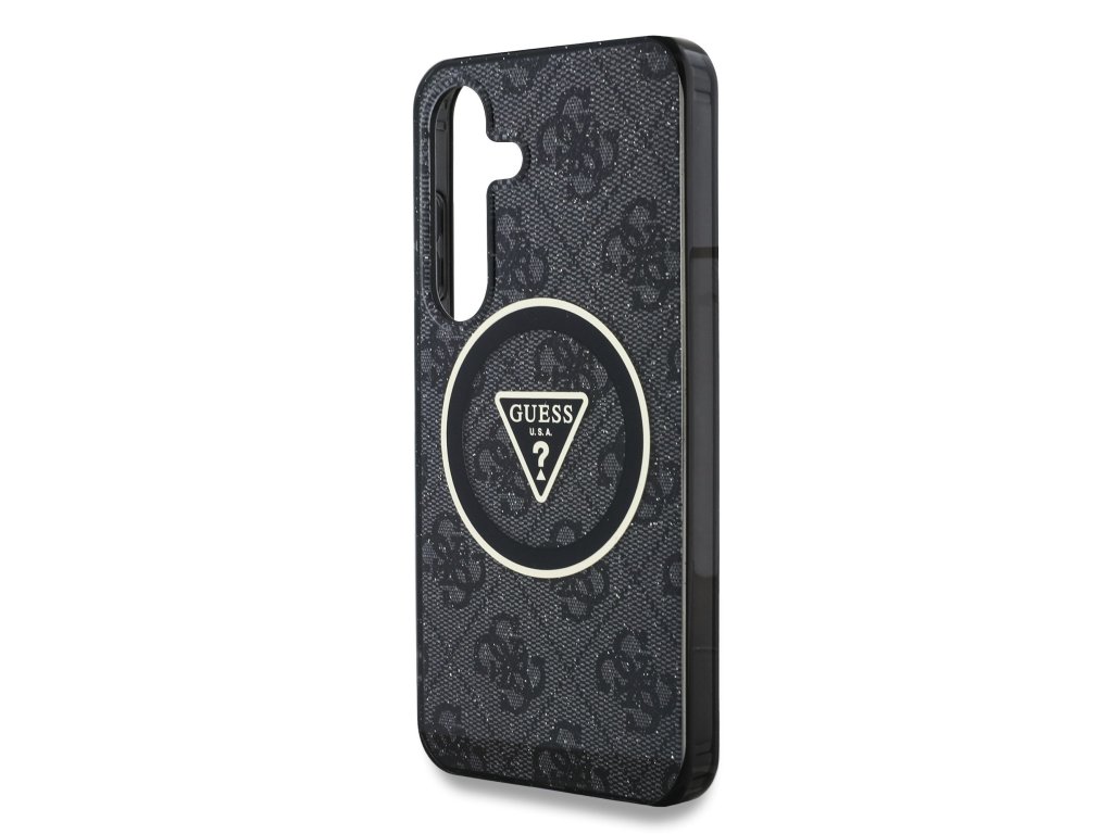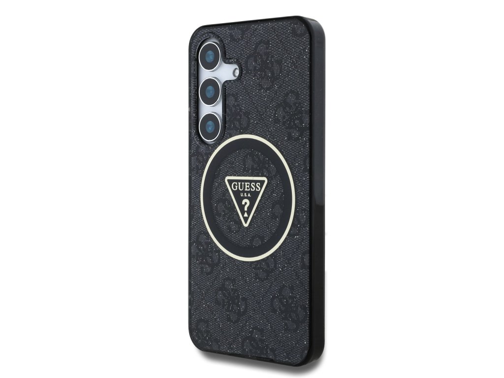 Guess IML 4G Glitter and Triangle Logo MagSafe Zadní Kryt pro Samsung Galaxy S25+ Black