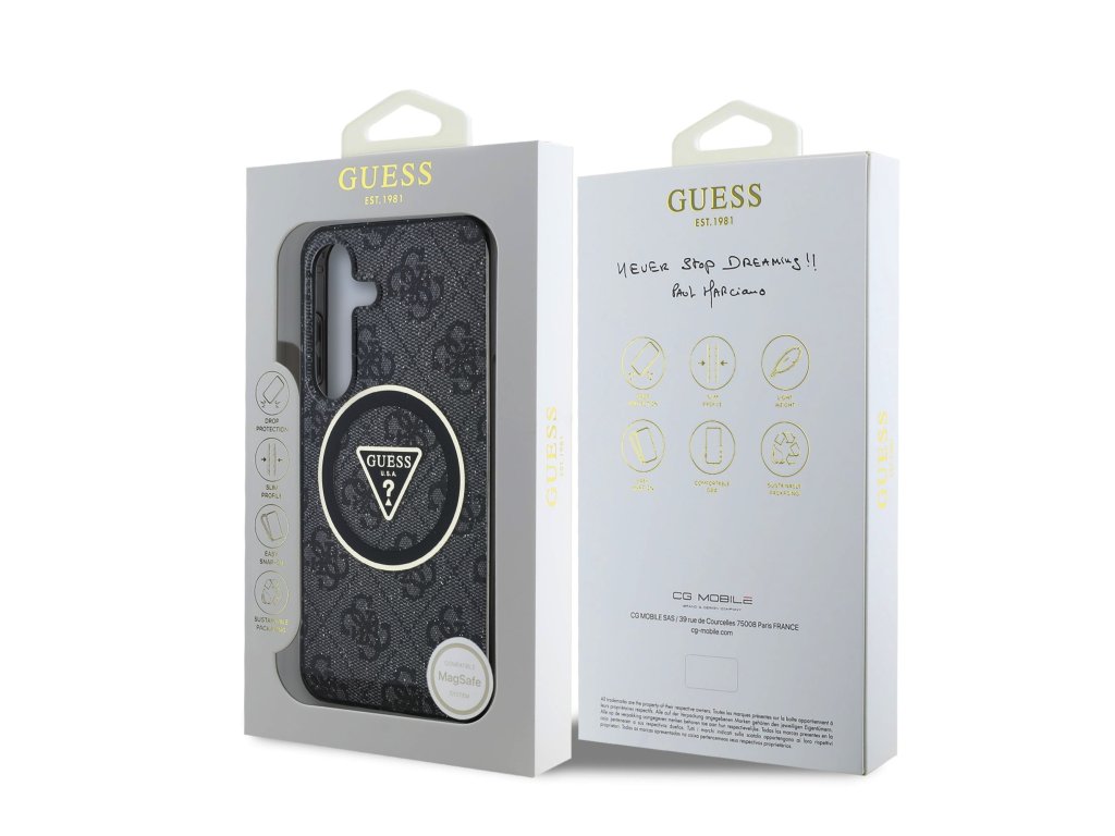 Design krytu vyniká triangle logem Guess ve zlatém kruhu a motivem 4G s jemnými třpytky na pozadí, což z něj činí nejen praktický, ale i stylový doplněk, který skvěle doplní váš outfit.