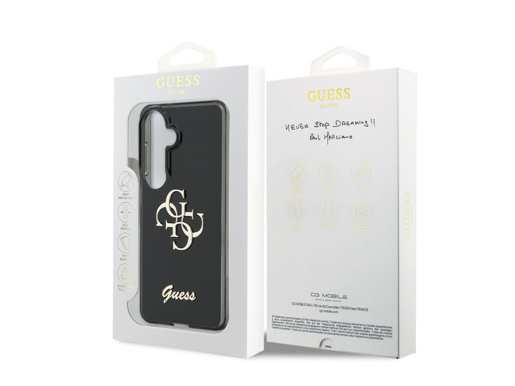 Design krytu vyniká kovovým 4G logem Guess na zadní straně, což z něj činí nejen praktický, ale i stylový doplněk, který skvěle doplní váš outfit.
