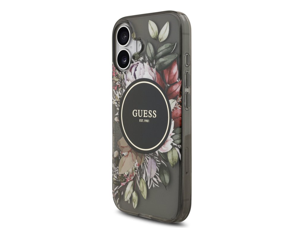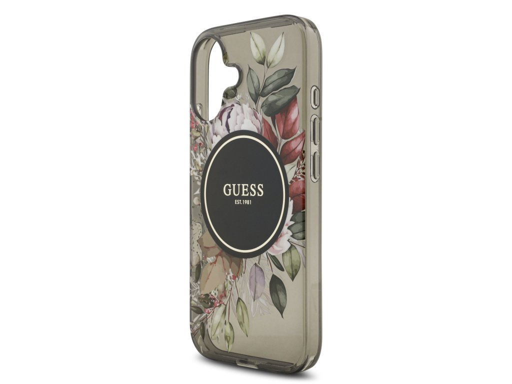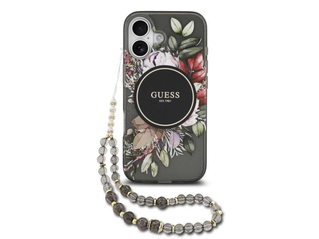 Guess IML Flowers Strap MagSafe Zadní Kryt pro iPhone 17 Black