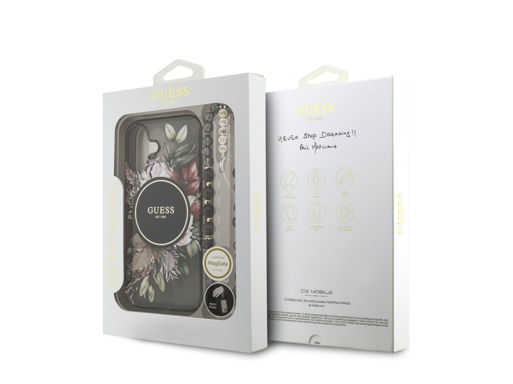 Guess IML Flower Pearl Strap MagSafe zadní kryt na telefon je skvělým doplňkem pro všechny milovníky stylu a praktičnosti.Tento kryt je vyroben z kombinace pevného PC plastu na zadní straně a TPU měkkého plastu na bocích, což vytváří dokonalou symbiózu odolnosti a pohodlí.