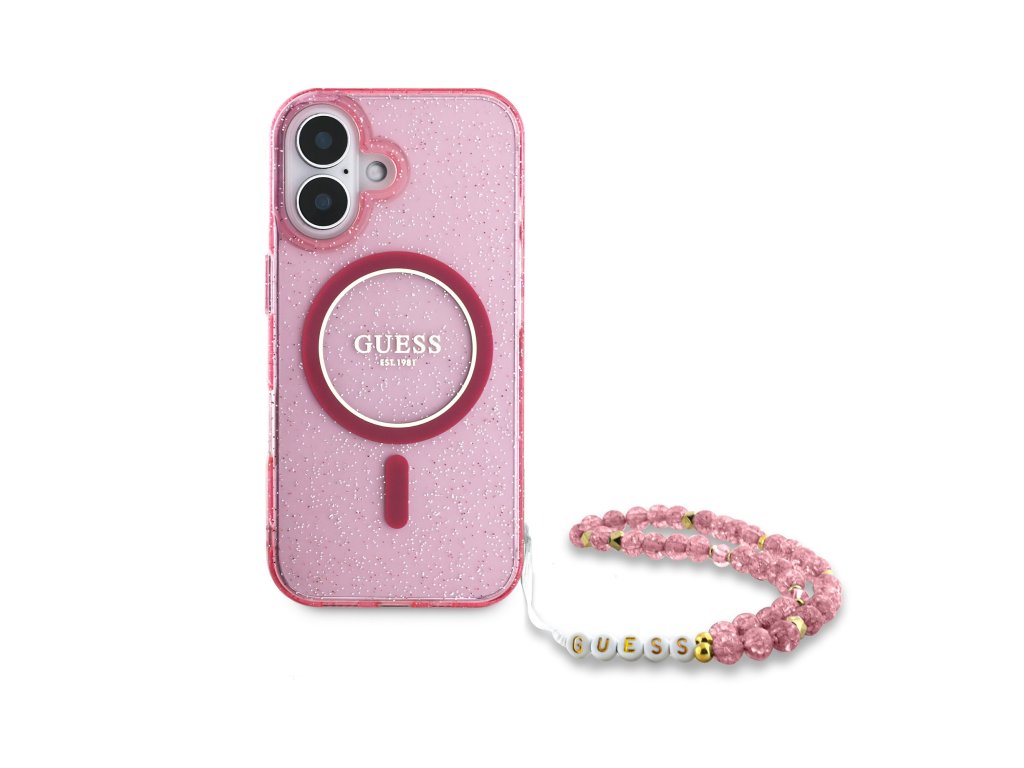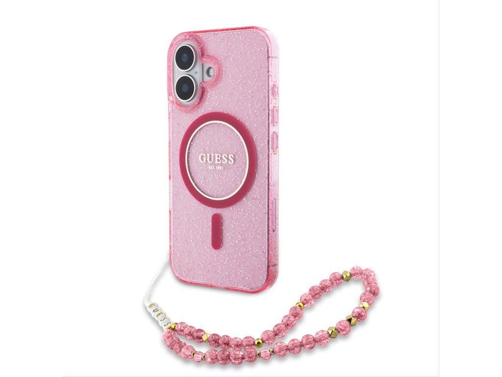 Guess IML Glitter Strap MagSafe Zadní Kryt pro iPhone 16 Plus Pink