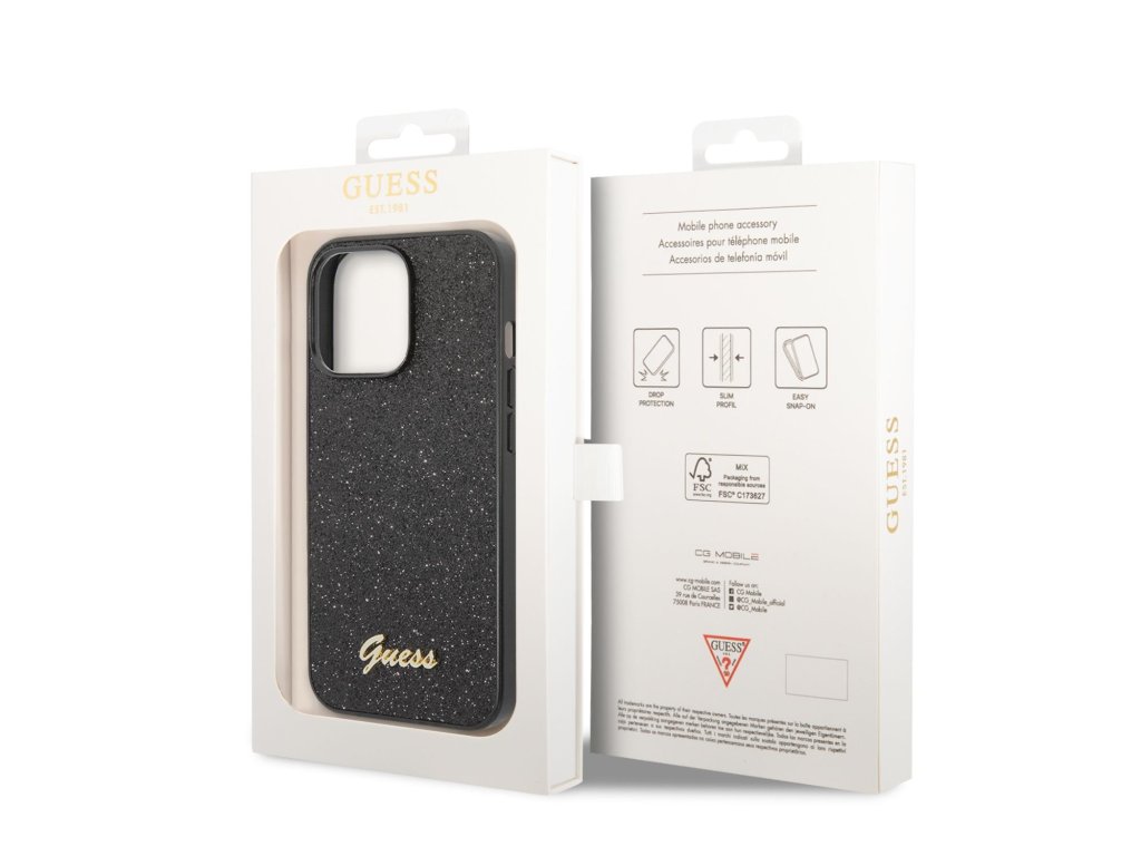 Guess PC/TPU Glitter Flakes Metal Logo Zadní Kryt pro iPhone 14 Pro Max Black