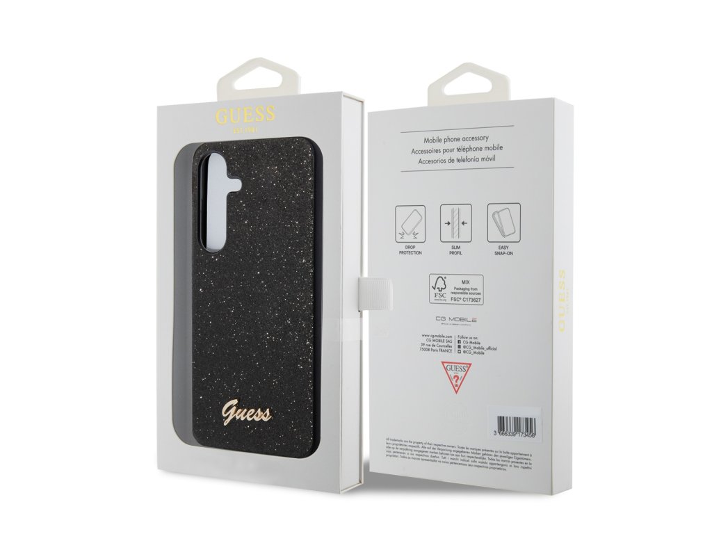 Guess PC/TPU Glitter Flakes Metal Logo Zadní Kryt pro Samsung Galaxy S24 Black