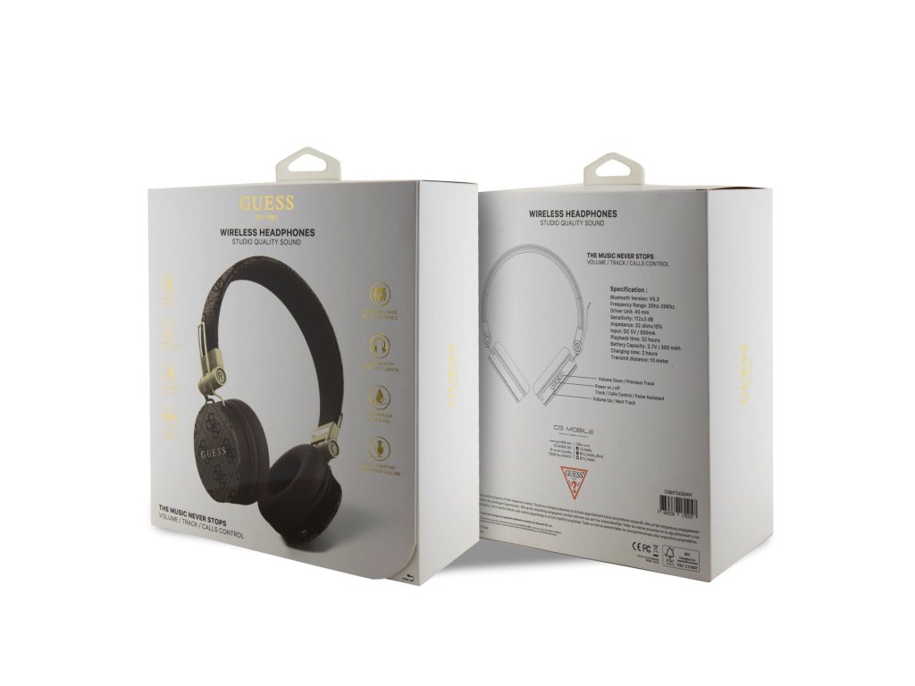 Nečekejte a objednejte si ještě dnes Guess PU 4G Metal Logo Bluetooth Stereo Headphone.