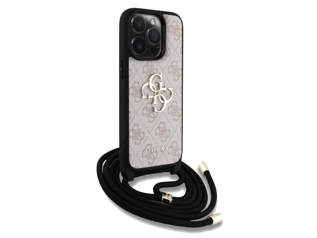 Guess PU 4G Metal Logo Crossbody Popruh Zadní Kryt pro iPhone 15 Pro Pink