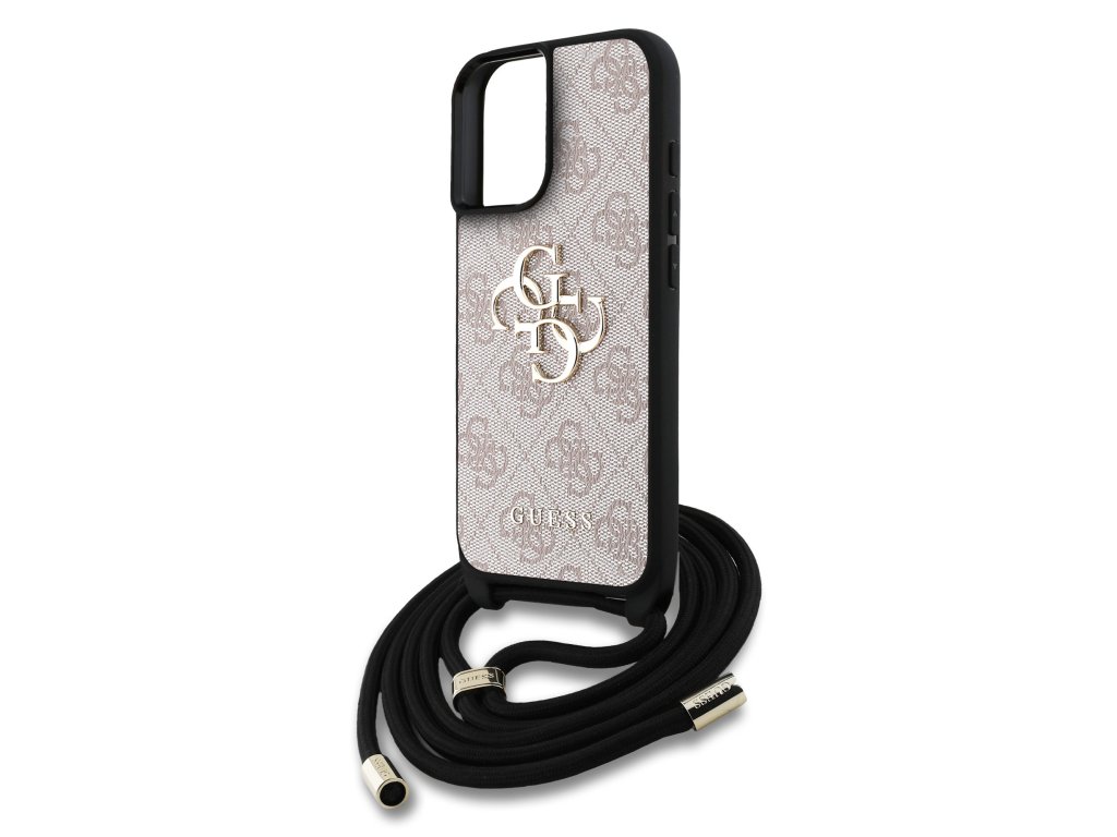 Guess PU 4G Metal Logo Crossbody Popruh Zadní Kryt pro iPhone 16 Pink