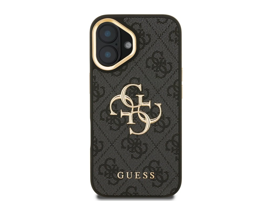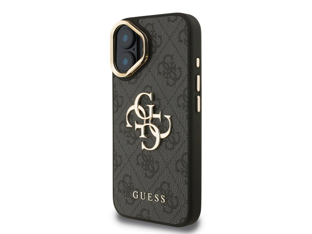 Guess PU 4G Metal Logo Stand Camera Frame Zadní Kryt pro iPhone 16 Black
