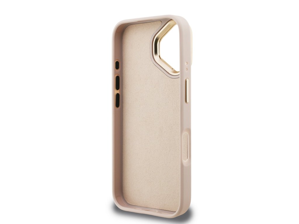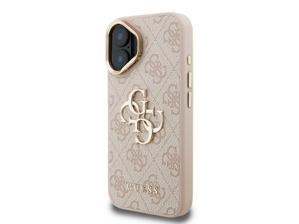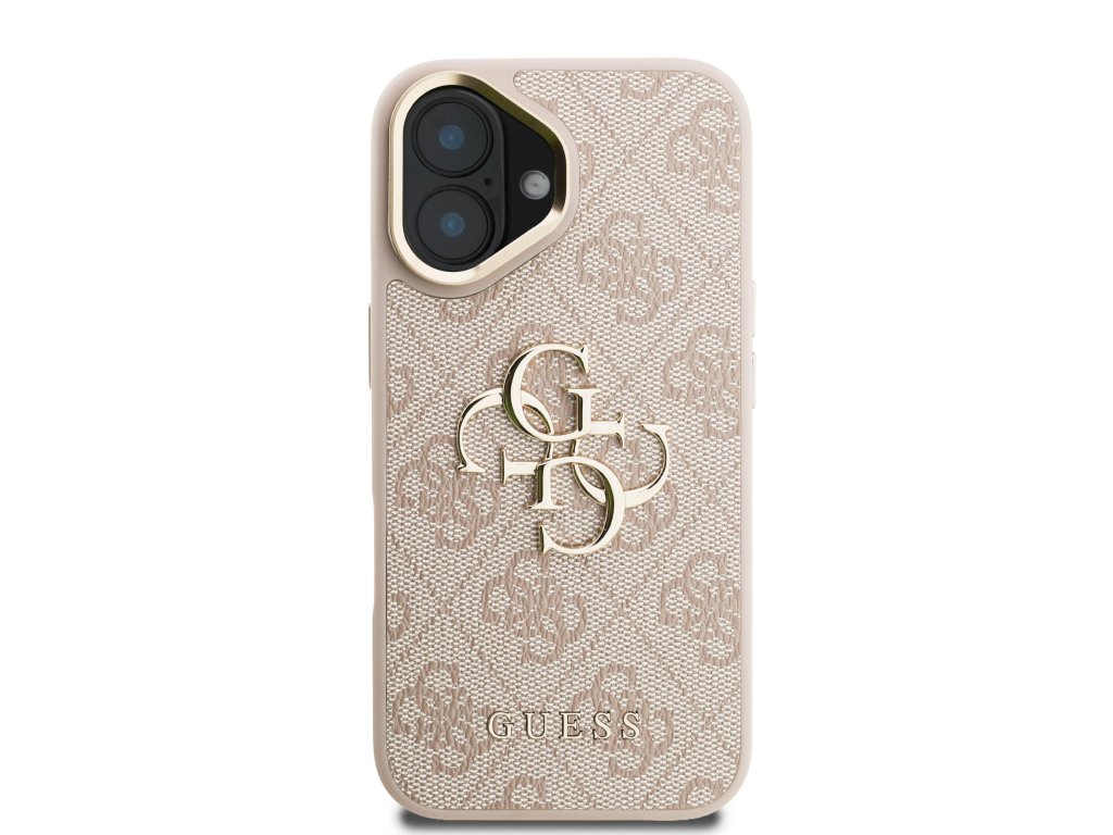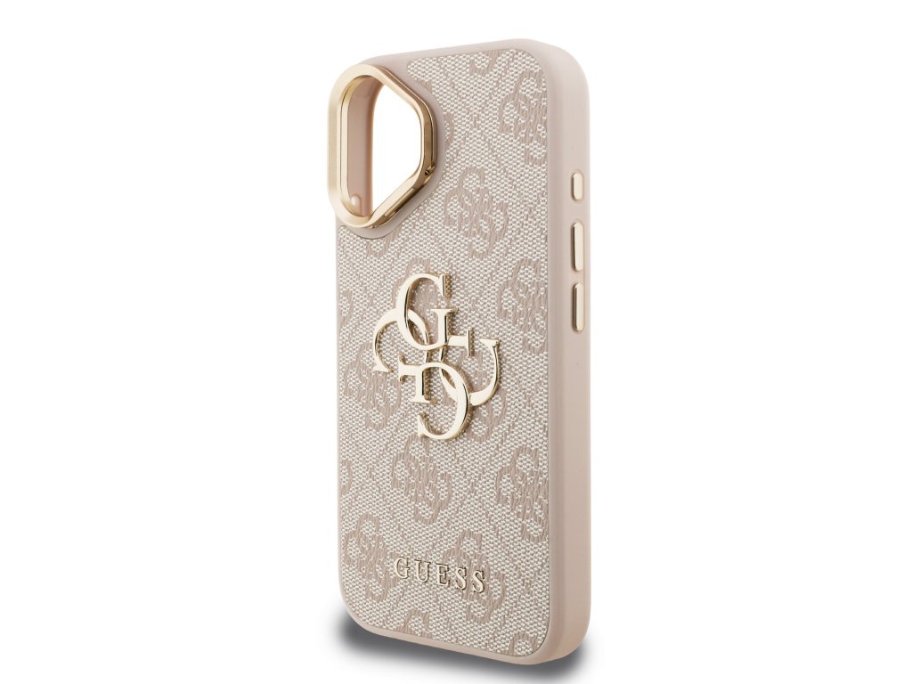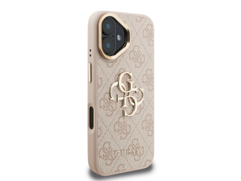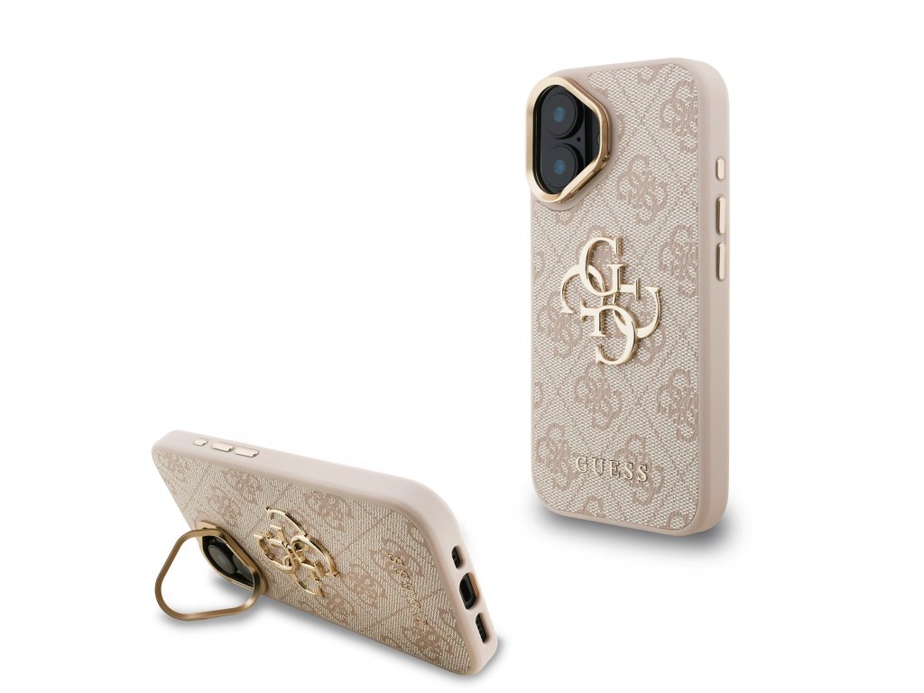 Guess PU 4G Metal Logo Stand Camera Frame Zadní Kryt pro iPhone 16 Pink