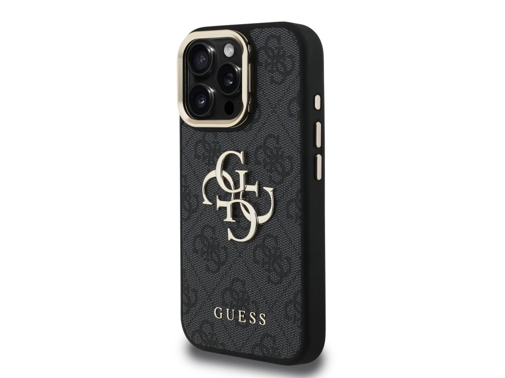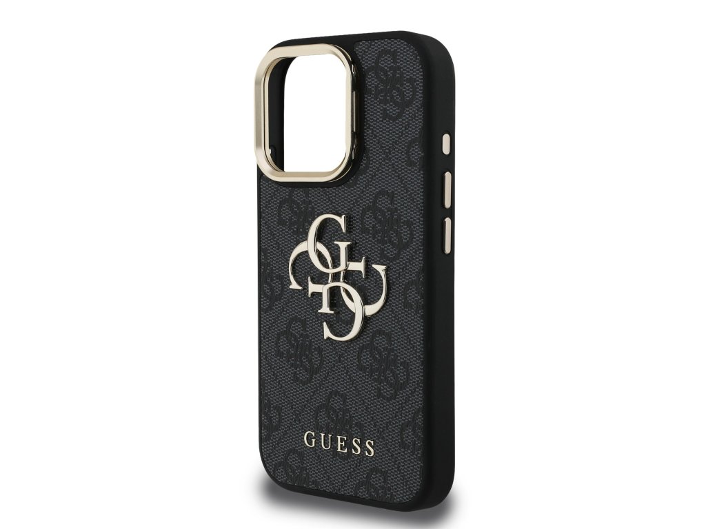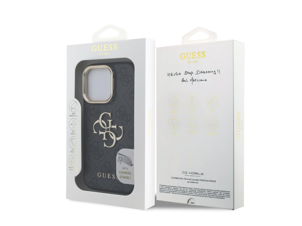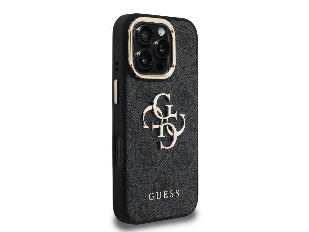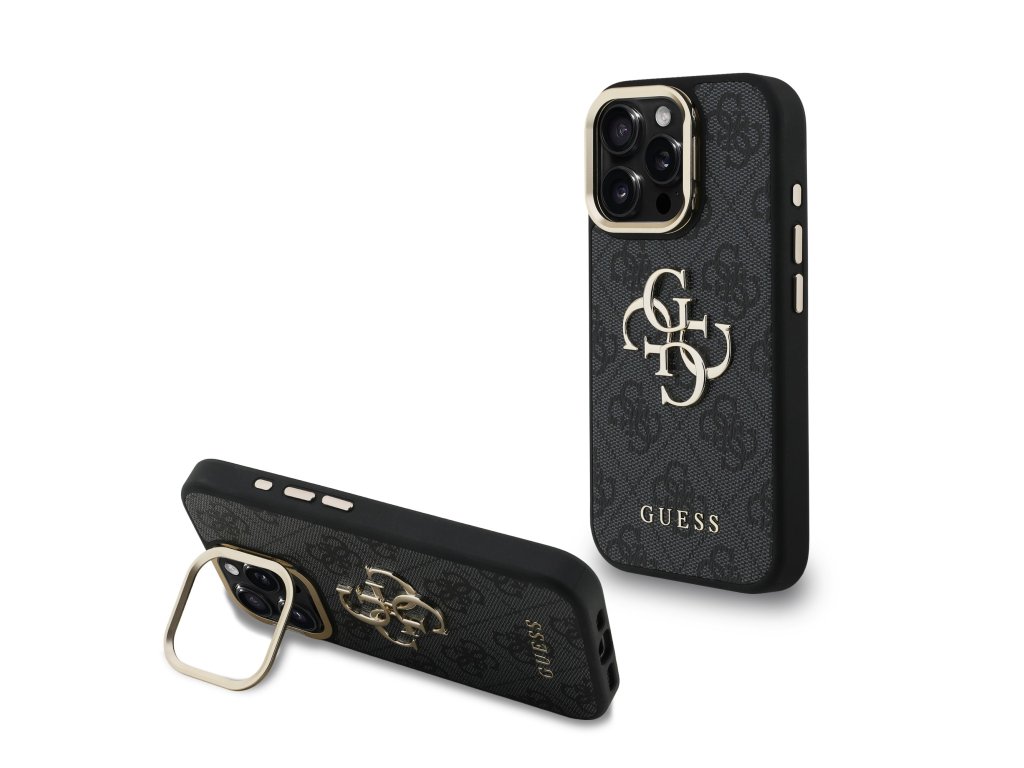 Guess PU 4G Metal Logo Stand Camera Frame Zadní Kryt pro iPhone 16 Pro Max Black
