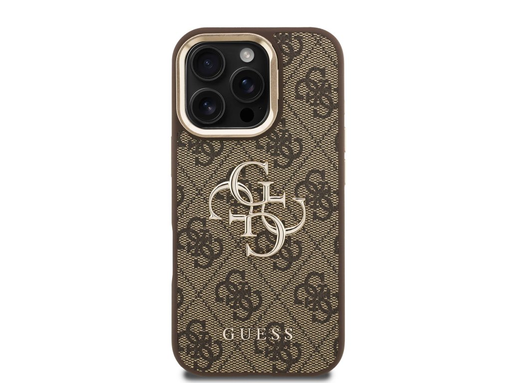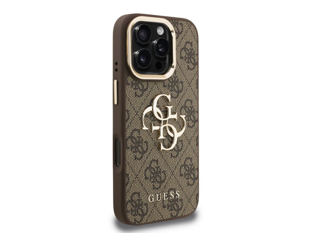 Guess PU 4G Metal Logo Stand Camera Frame Zadní Kryt pro iPhone 16 Pro Max Brown