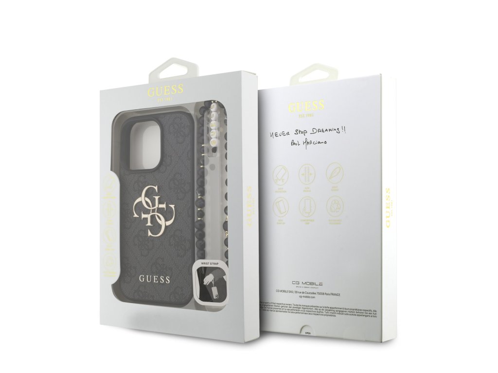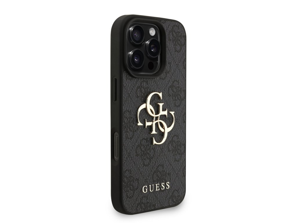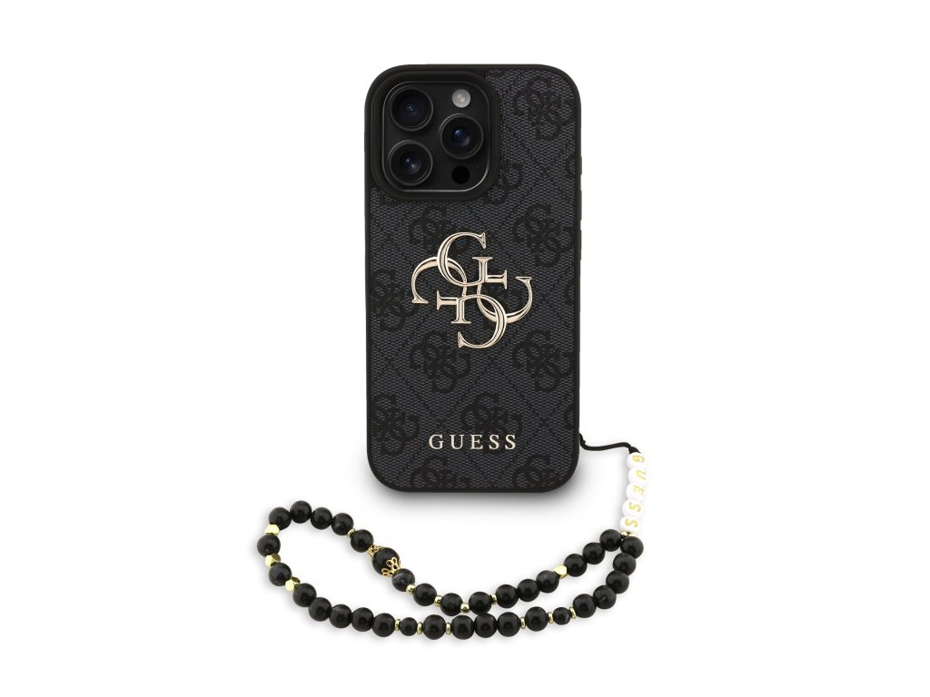 Guess PU 4G Metal Logo Strap Zadní Kryt pro iPhone 16 Pro Max Black