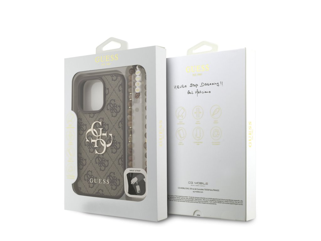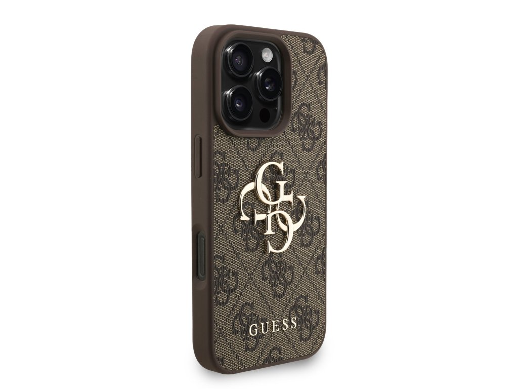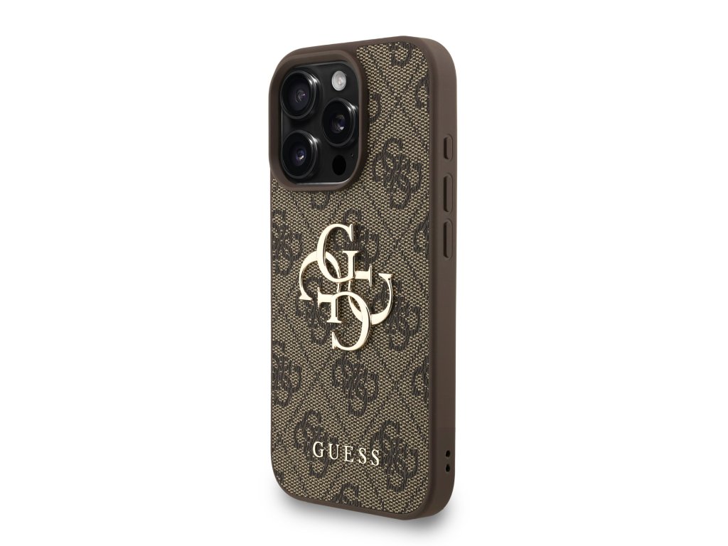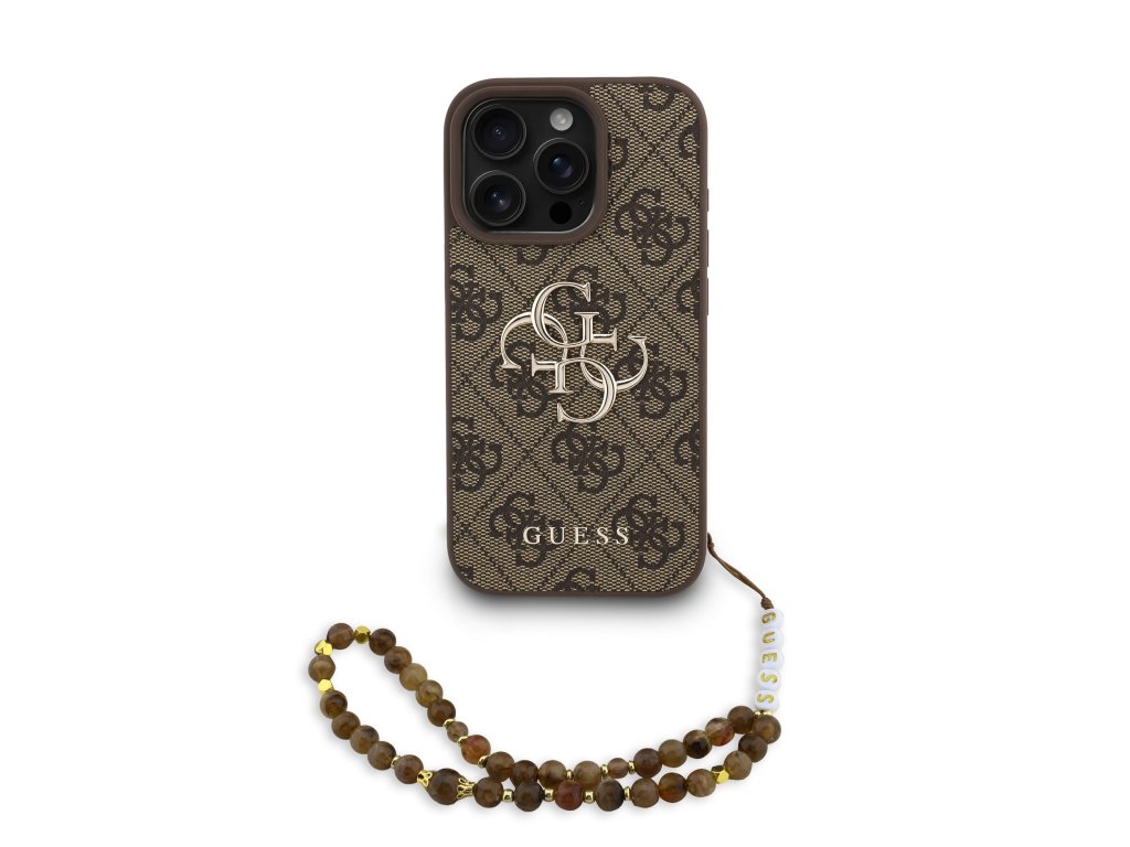 Guess PU 4G Metal Logo Strap Zadní Kryt pro iPhone 16 Pro Max Brown