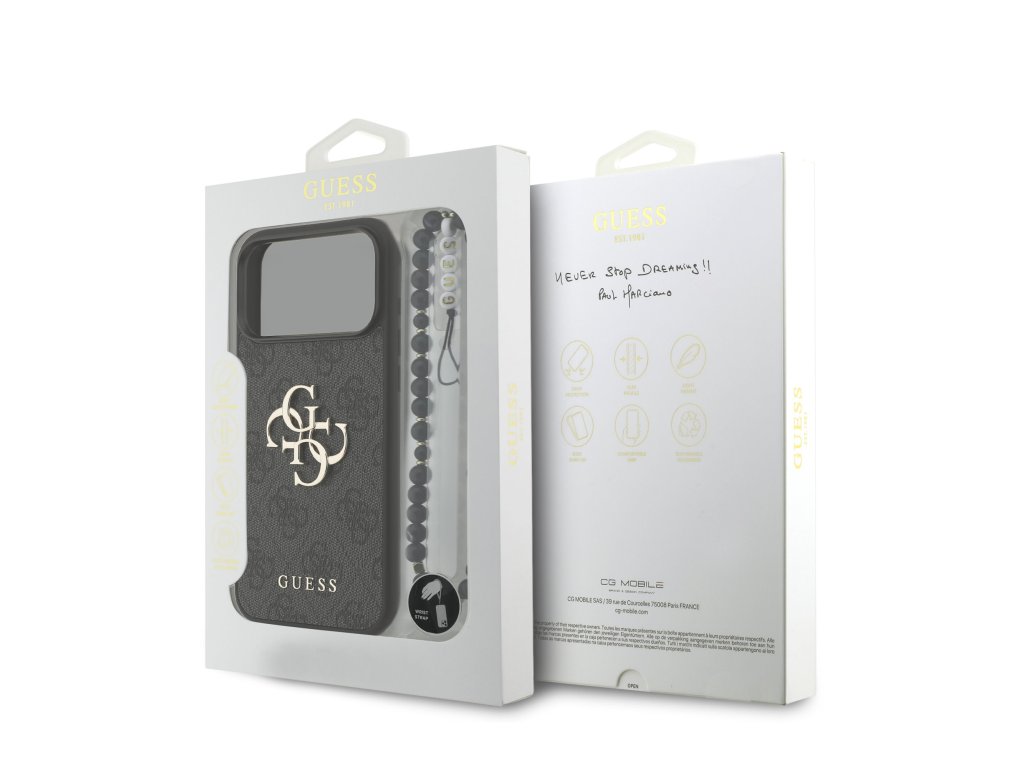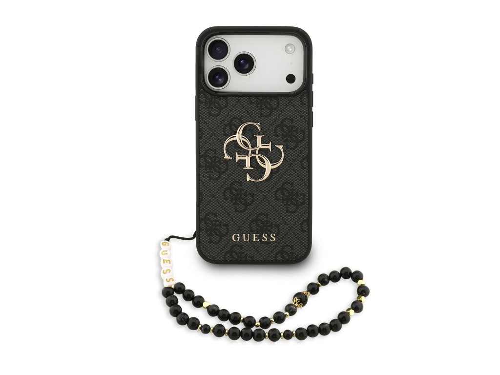 Guess PU 4G Metal Logo Strap Zadní Kryt pro iPhone 17 Pro Max Black