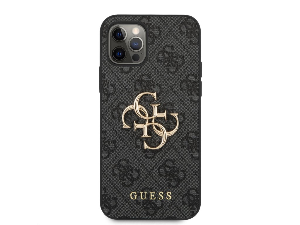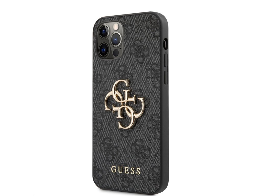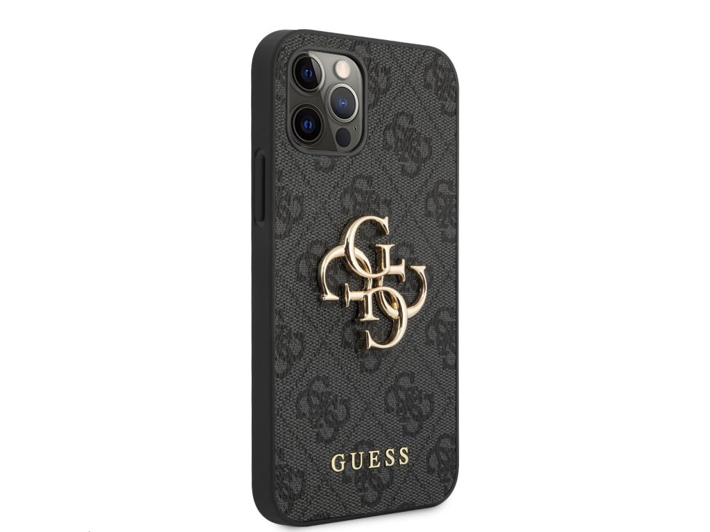Guess PU 4G Metal Logo Zadní Kryt pro iPhone 12/12 Pro Grey