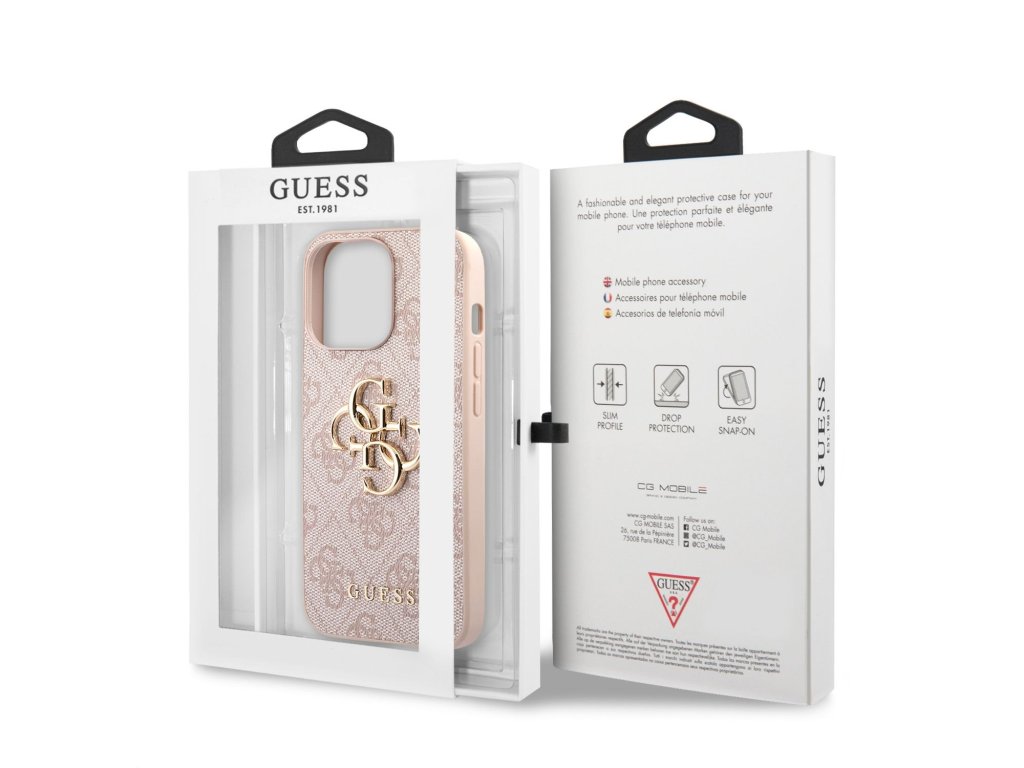 Guess PU 4G Metal Logo Zadní Kryt pro iPhone 13 Pro Pink