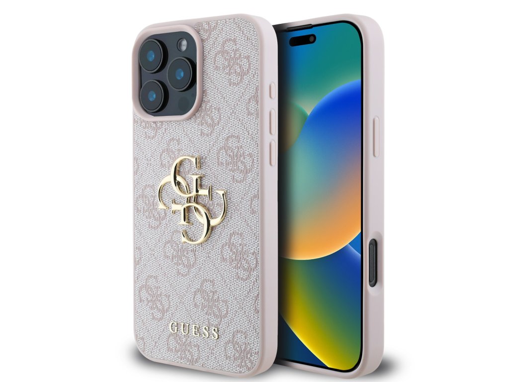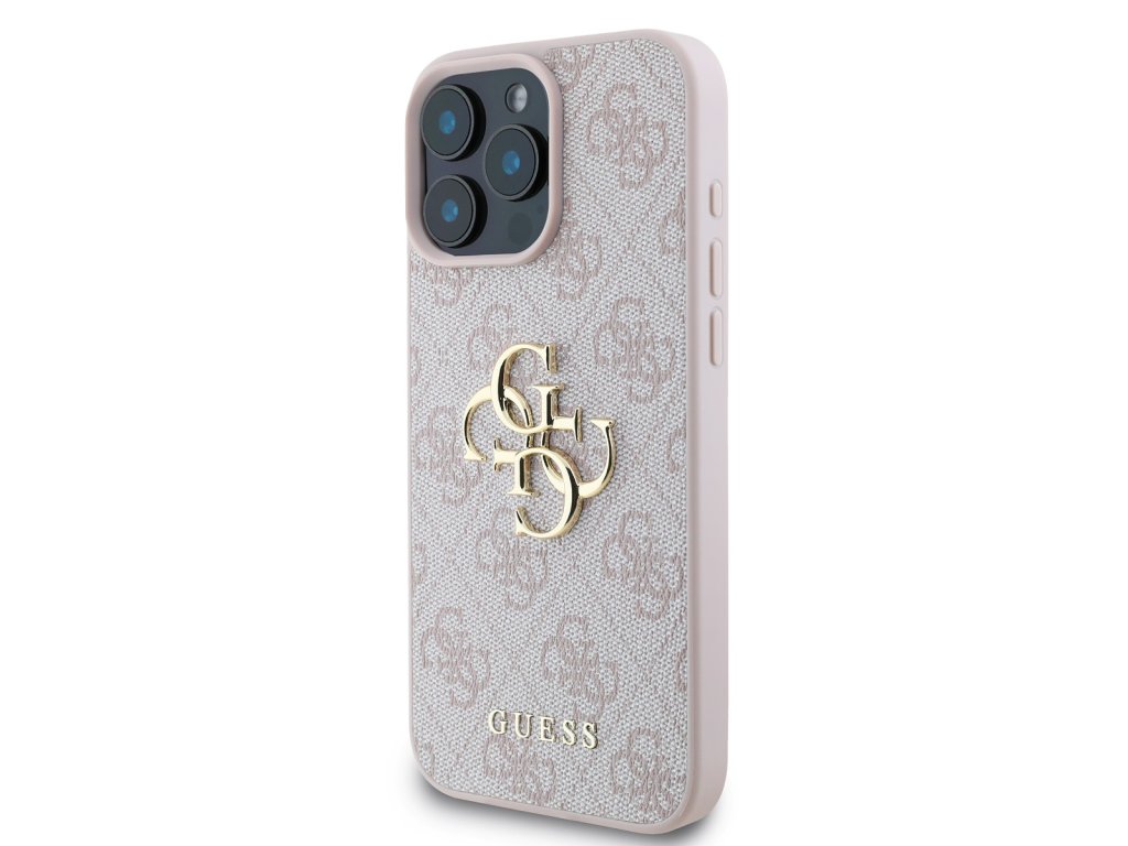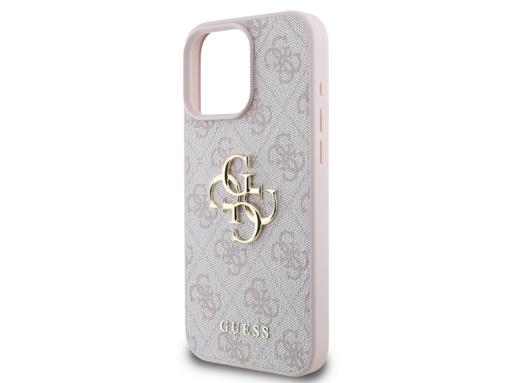Guess PU 4G Metal Logo Zadní Kryt pro iPhone 16 Pro Max Pink