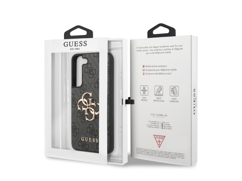 Guess PU 4G Metal Logo Zadní Kryt pro Samsung Galaxy S23 Grey