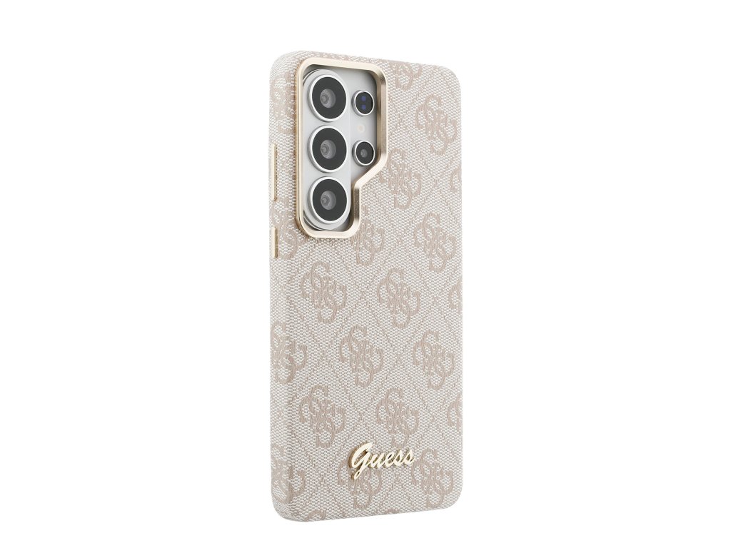 Guess PU 4G Script Metal Logo Magnetic Zadní Kryt pro Samsung Galaxy S26 Ultra Pink