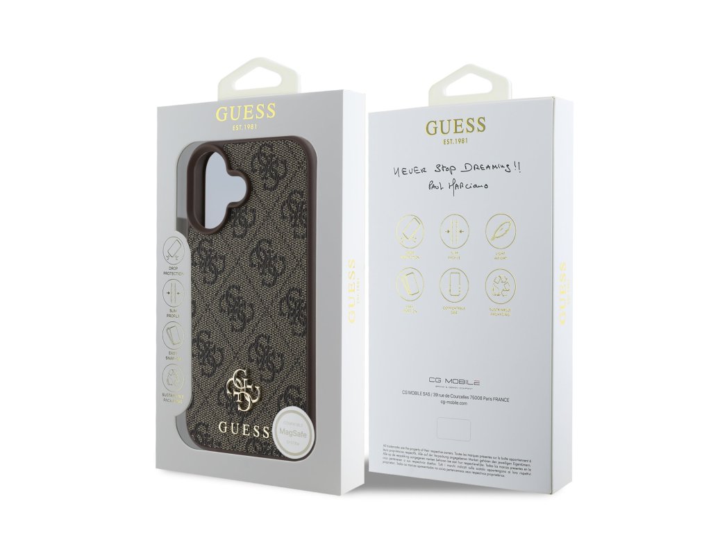 Guess PU 4G Small Metal Logo MagSafe Zadní Kryt pro iPhone 16 Plus Brown