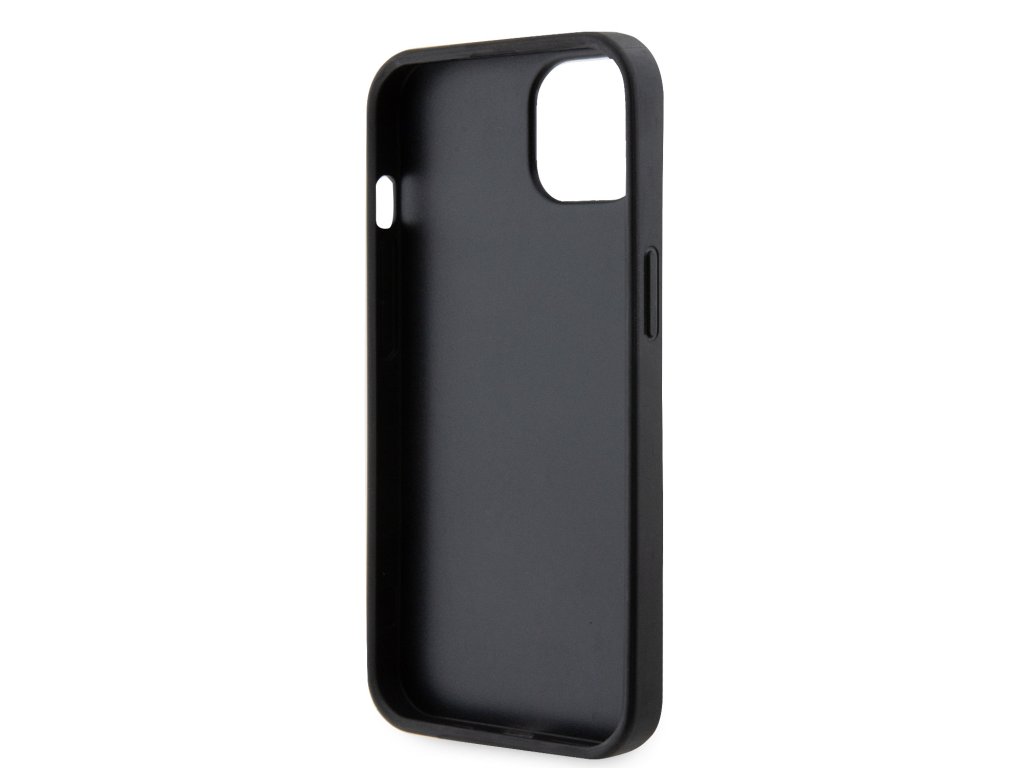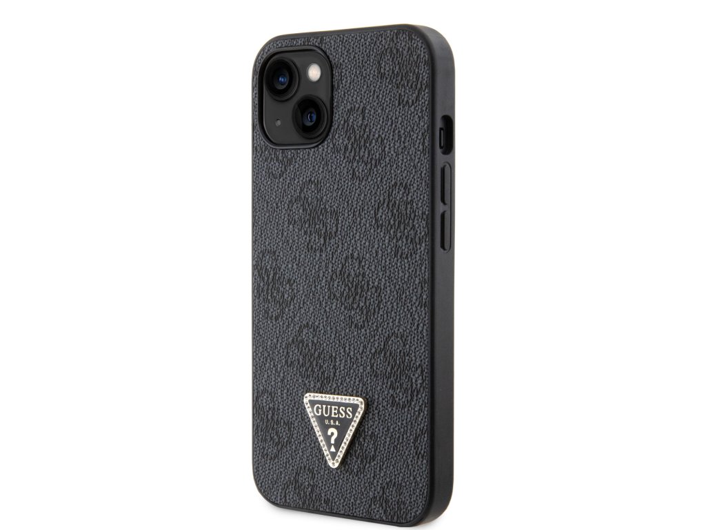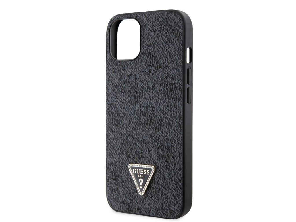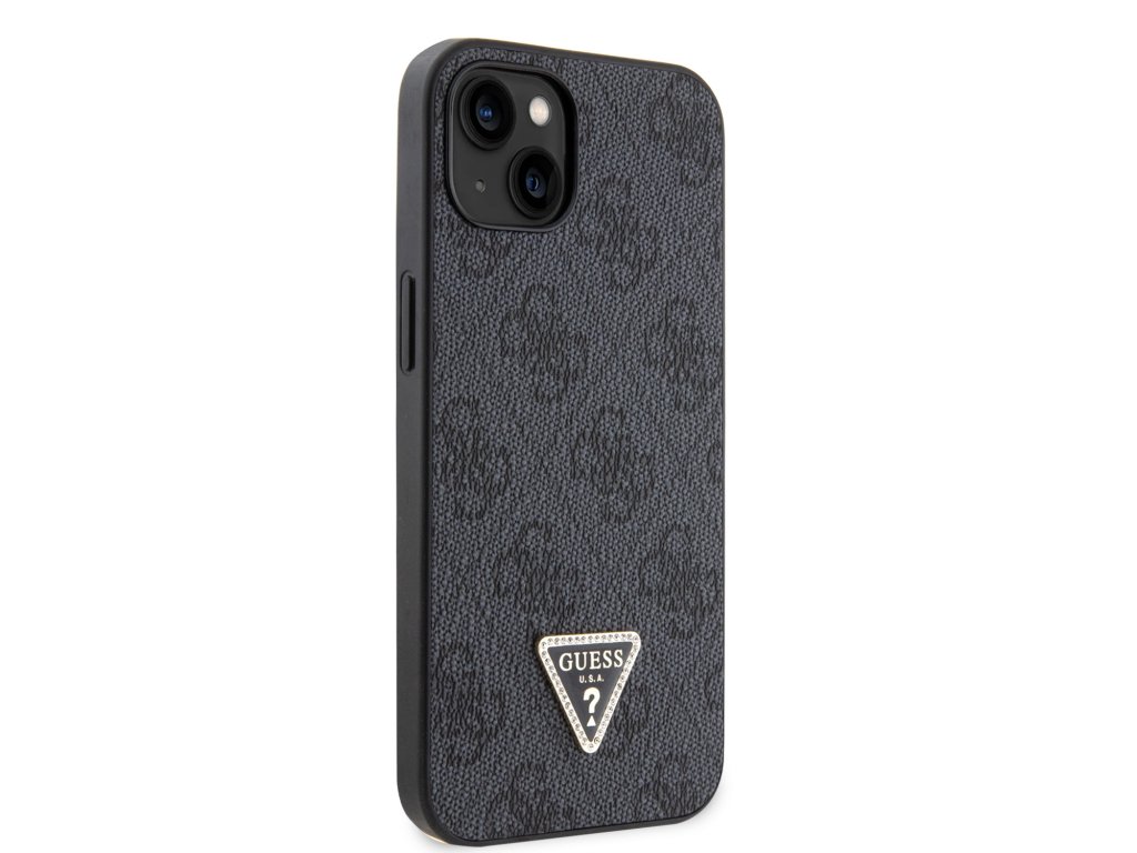 Guess PU 4G Strass Triangle Metal Logo Zadní Kryt pro iPhone 15 Black