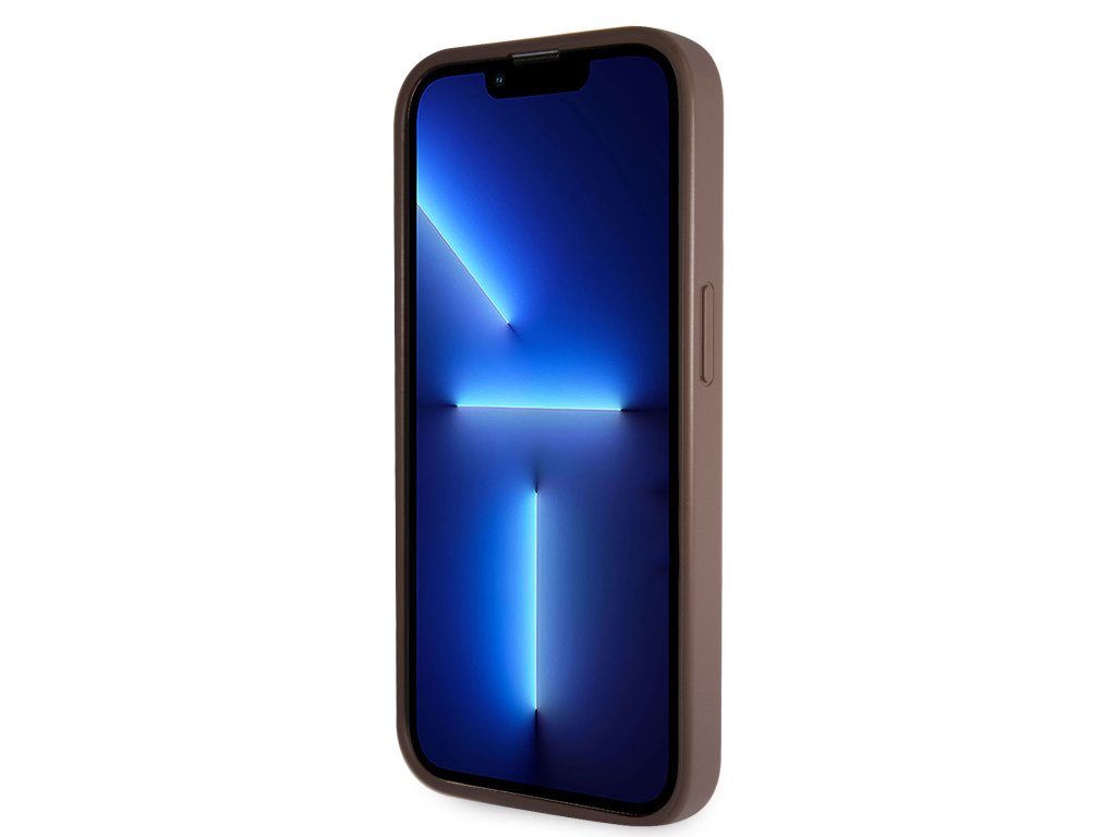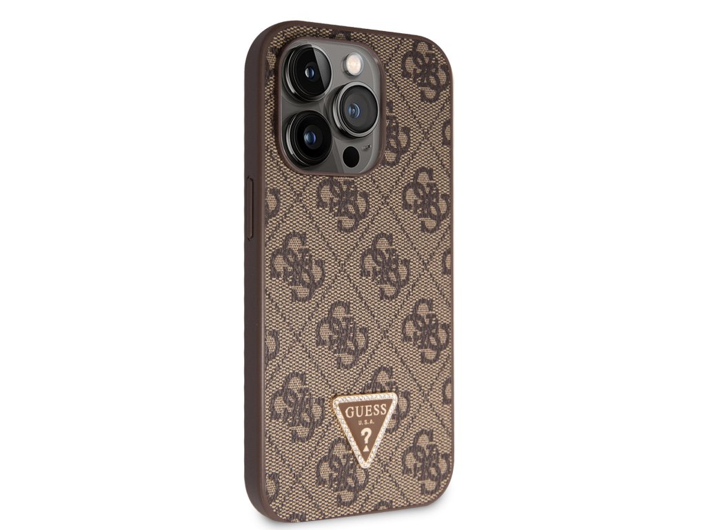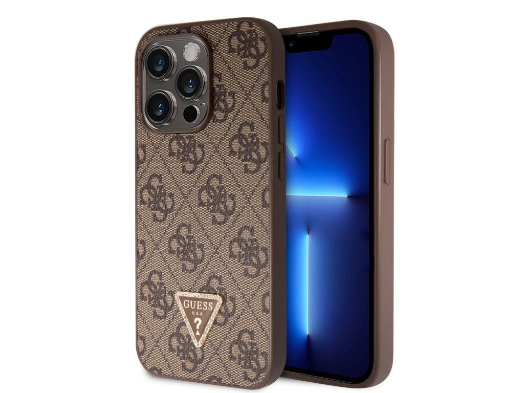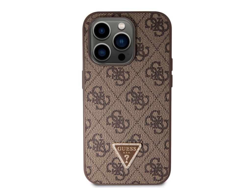 Guess PU 4G Strass Triangle Metal Logo Zadní Kryt pro iPhone 15 Pro Brown
