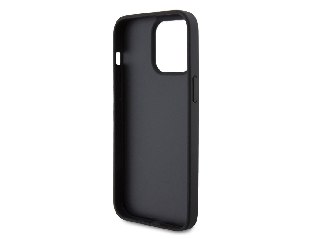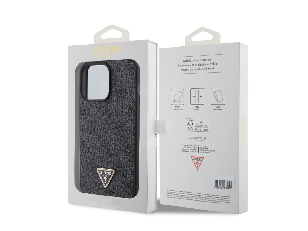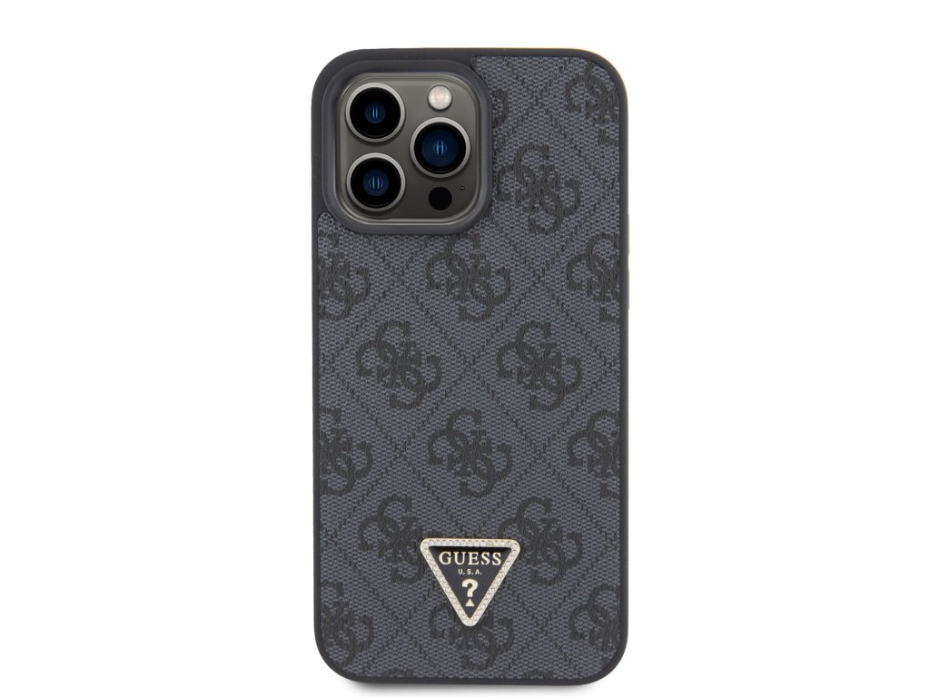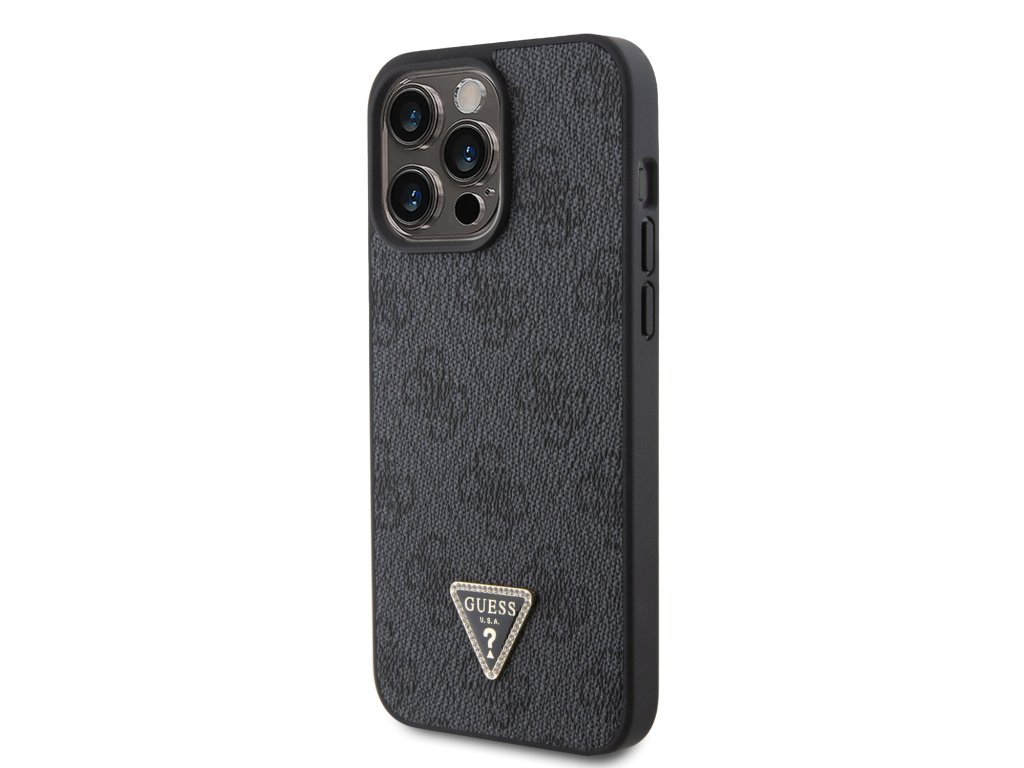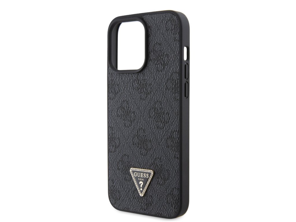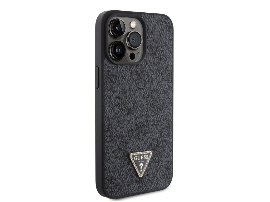 Guess PU 4G Strass Triangle Metal Logo Zadní Kryt pro iPhone 15 Pro Max Black