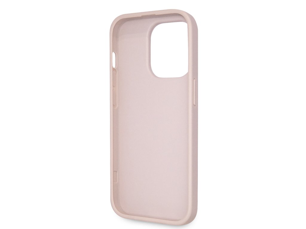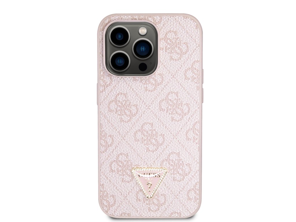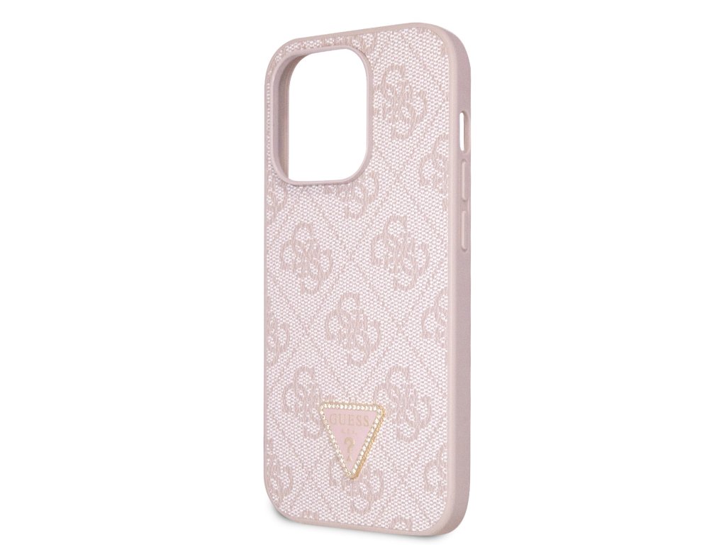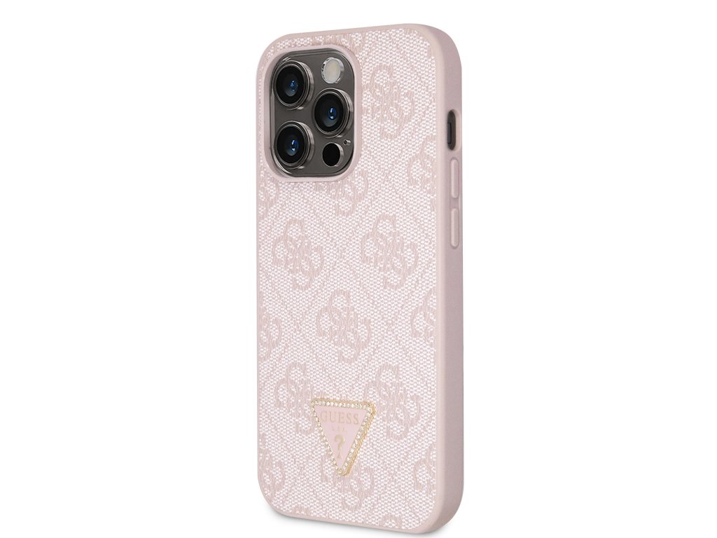 Guess PU 4G Strass Triangle Metal Logo Zadní Kryt pro iPhone 15 Pro Pink