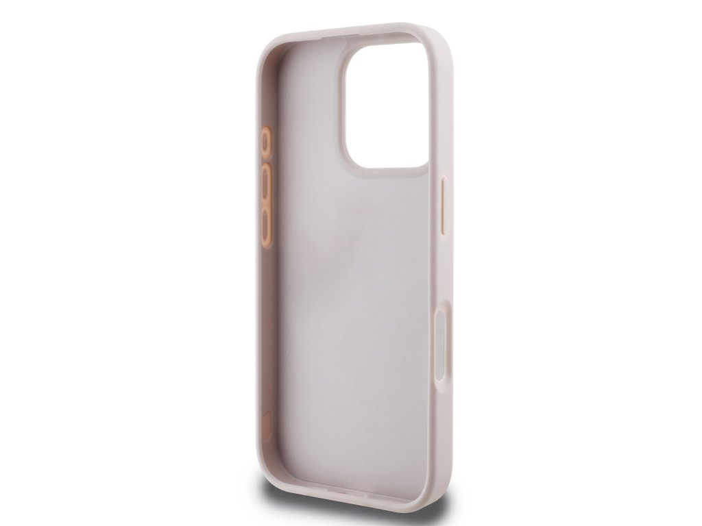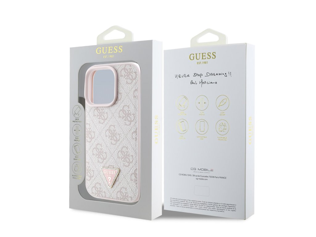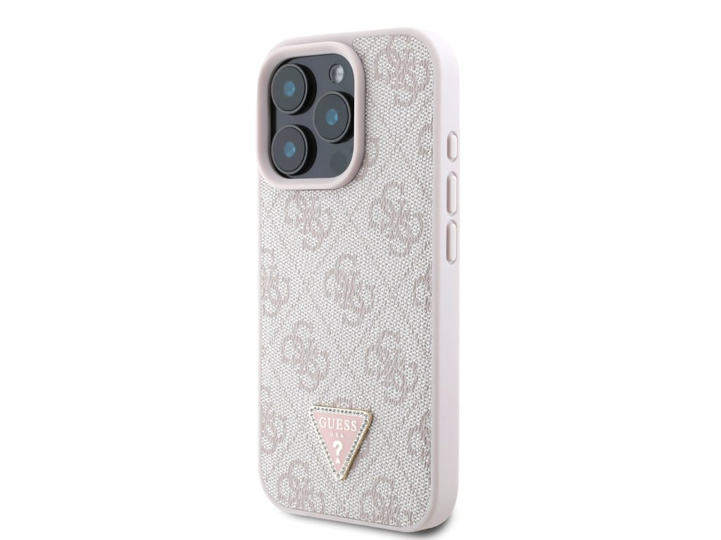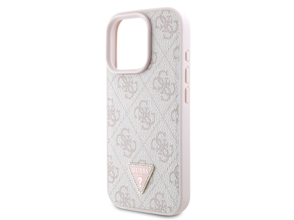 Guess PU 4G Strass Triangle Metal Logo Zadní Kryt pro iPhone 16 Pro Max Pink