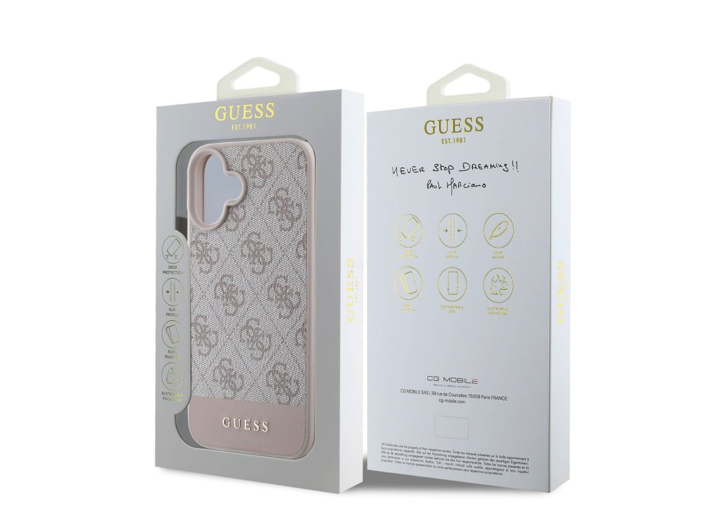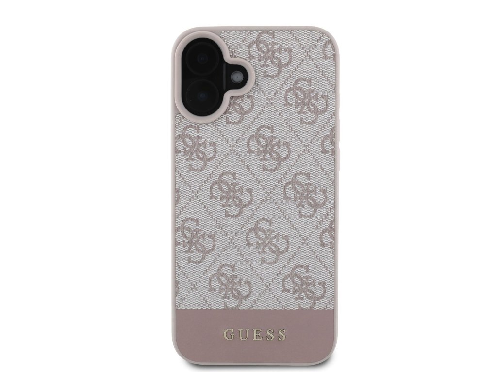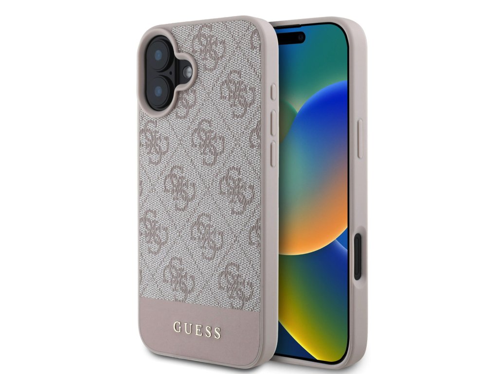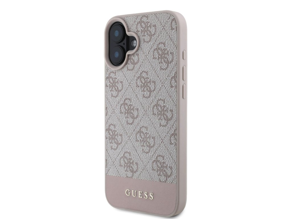Guess PU 4G Stripe Zadní Kryt pro iPhone 16 Pink