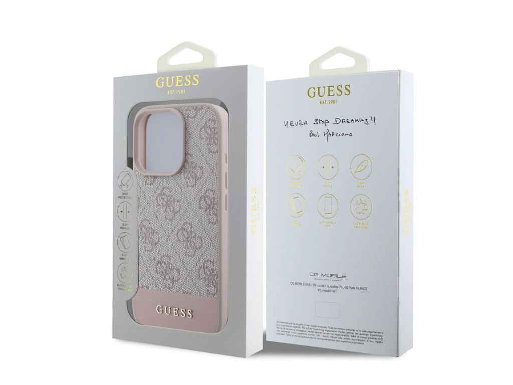 Guess PU 4G Stripe Zadní Kryt pro iPhone 16 Pro Max Pink
