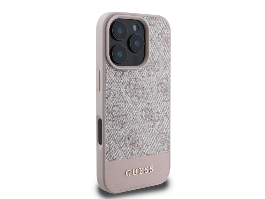 Guess PU 4G Stripe Zadní Kryt pro iPhone 16 Pro Pink