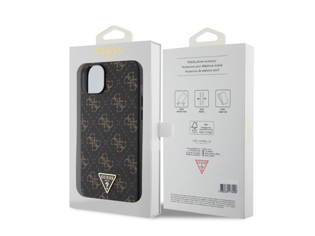 Prémiový zadní kryt Guess PU 4G Triangle Metal Logo se vyznačuje elegantním, charakteristickým 4G vzorem, doplněným o zlaté triangle logo GUESS.Kryt je vyrobený z pružného a pevného PU materiálu s povrchovou úpravou z PU kůže a nabízí tak nejen skvělou ochranu telefonu, ale také pohodlí při používání.