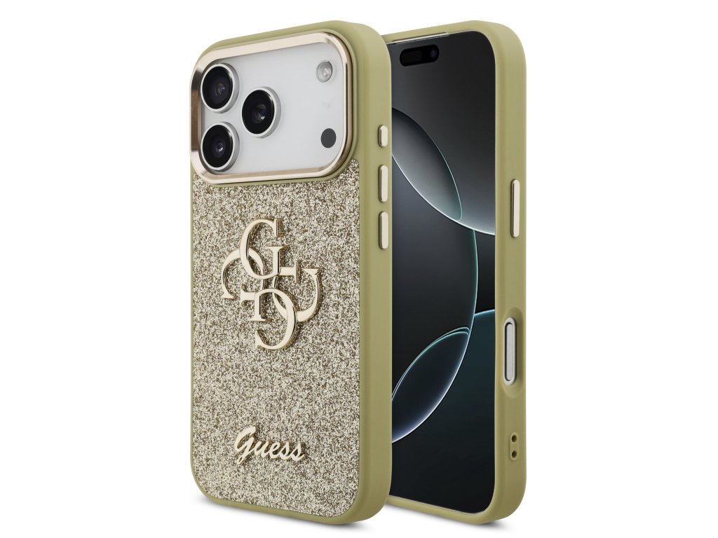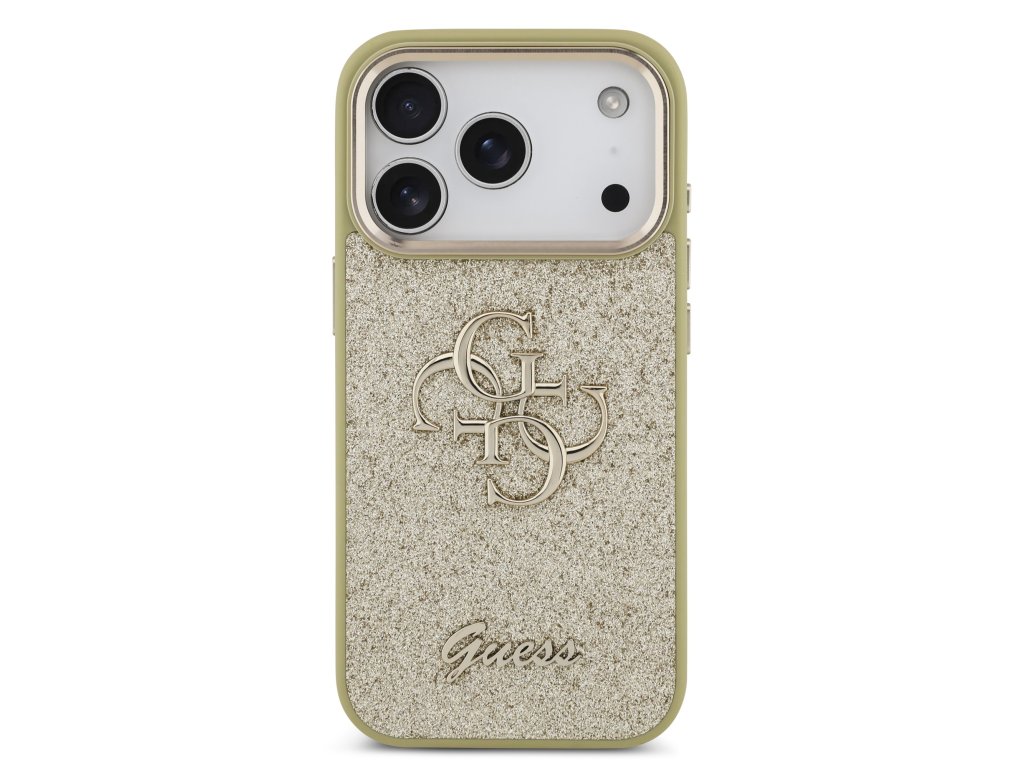 Guess PU Fixed Glitter 4G Metal Frame Zadní Kryt pro iPhone 17 Pro Gold