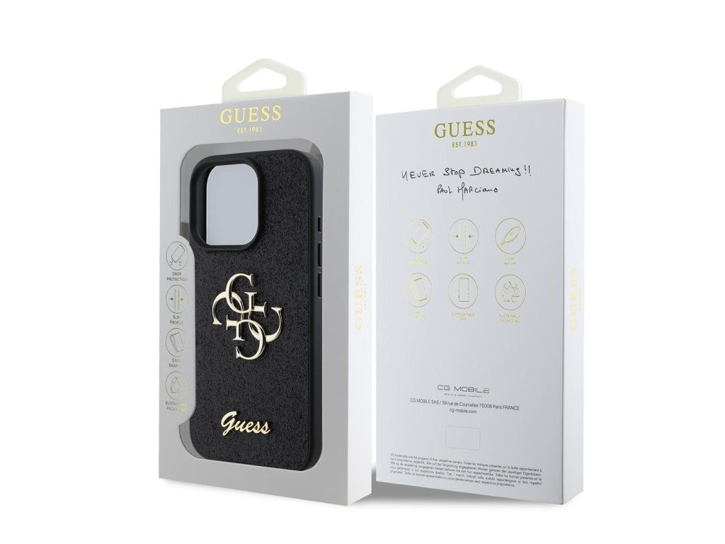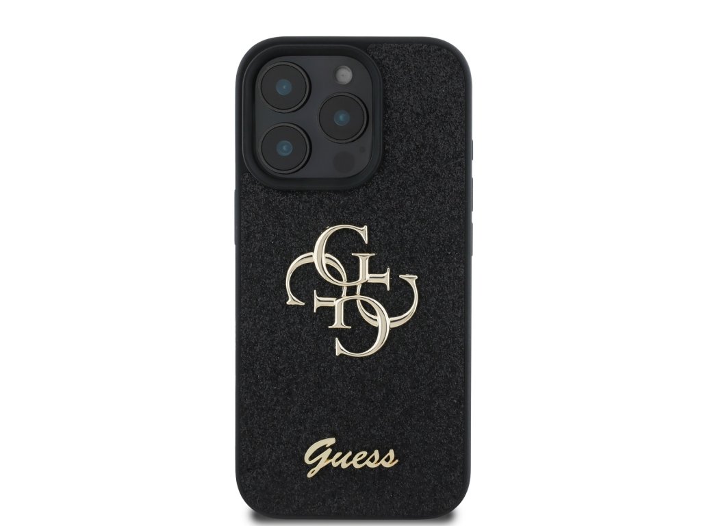 Guess PU Fixed Glitter 4G Metal Logo Zadní Kryt pro iPhone 16 Pro Max Black