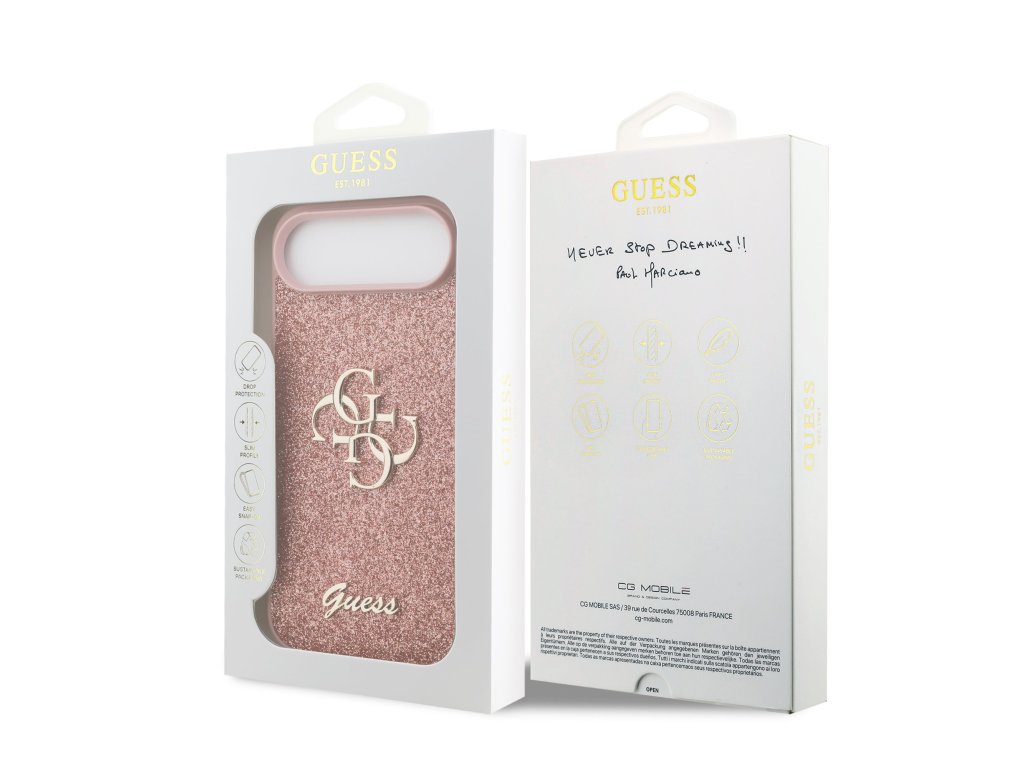 Guess PU Fixed Glitter 4G Metal Logo Zadní Kryt pro iPhone 17 Air Pink