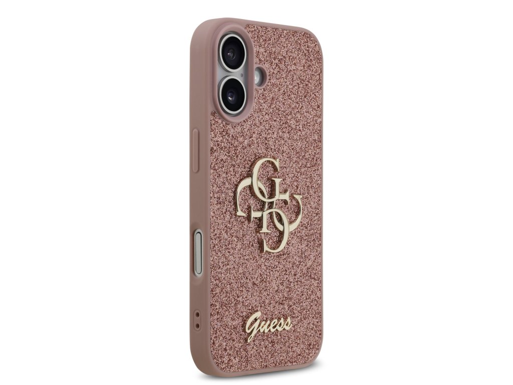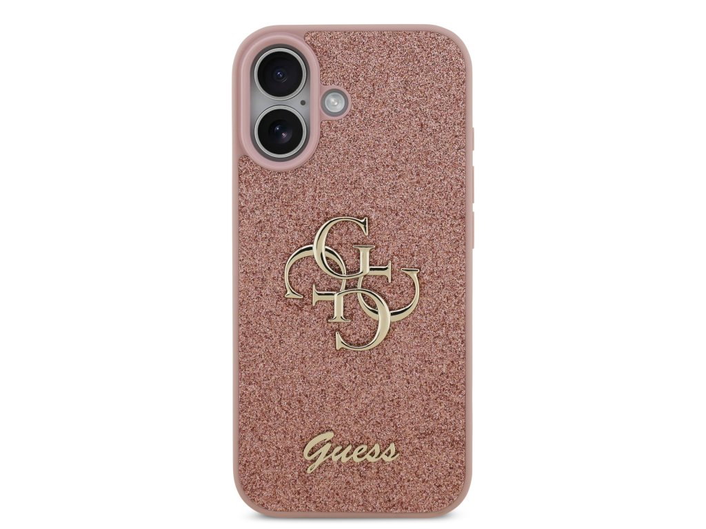 Guess PU Fixed Glitter 4G Metal Logo Zadní Kryt pro iPhone 17 Pink
