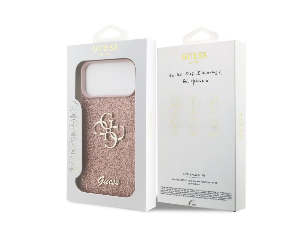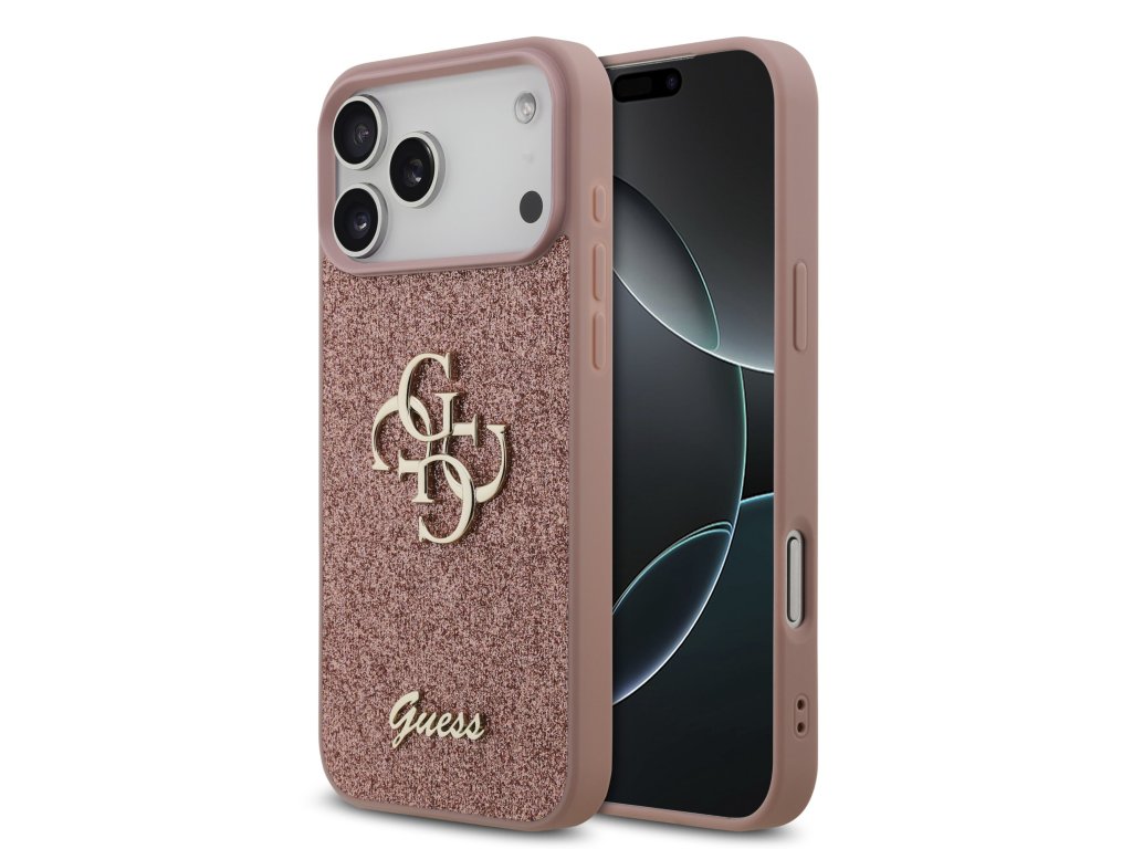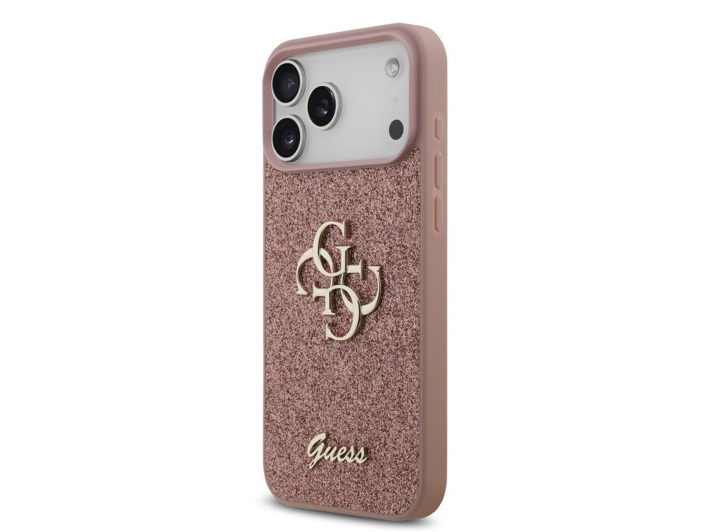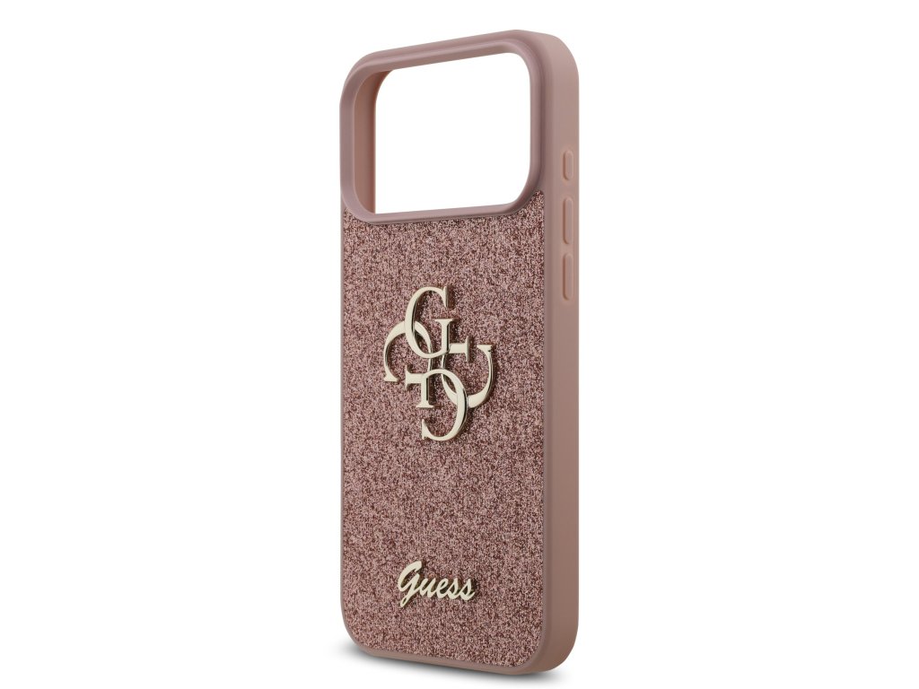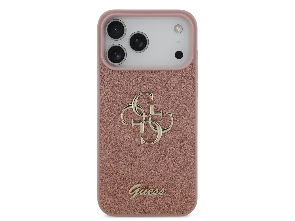 Guess PU Fixed Glitter 4G Metal Logo Zadní Kryt pro iPhone 17 Pro Max Pink