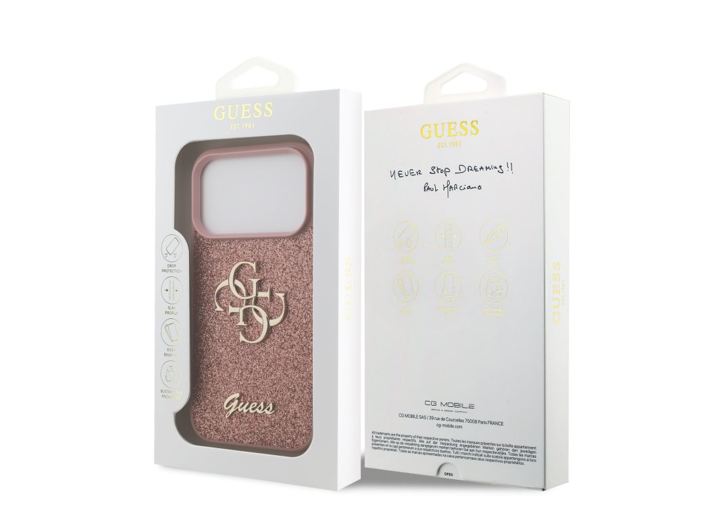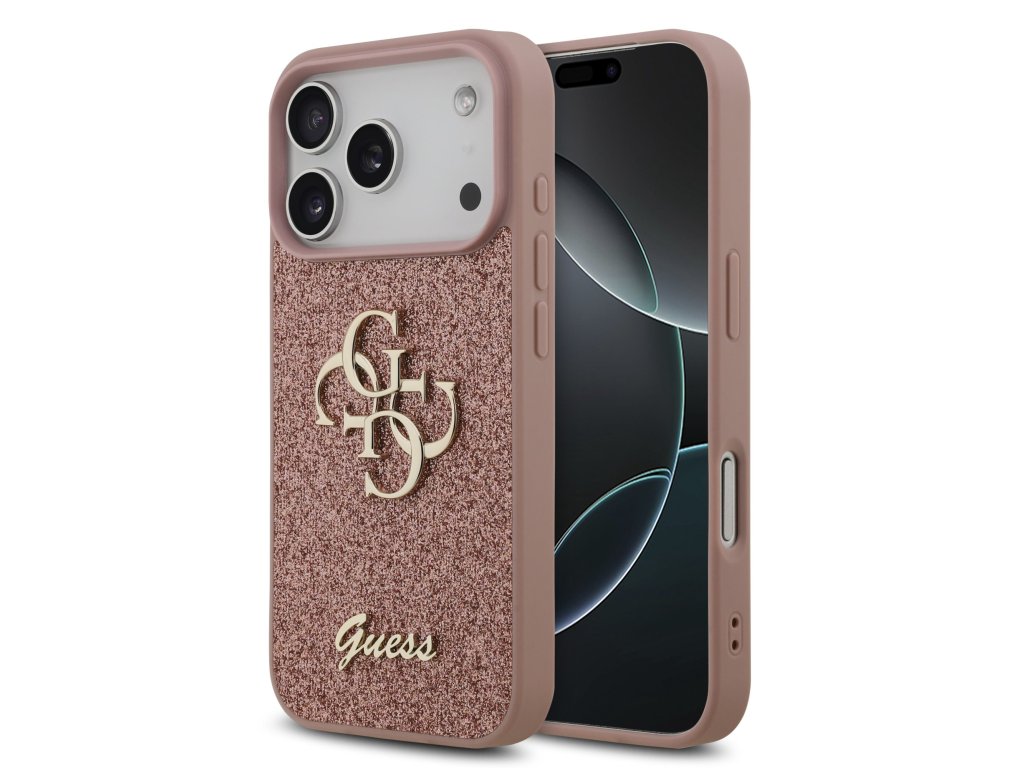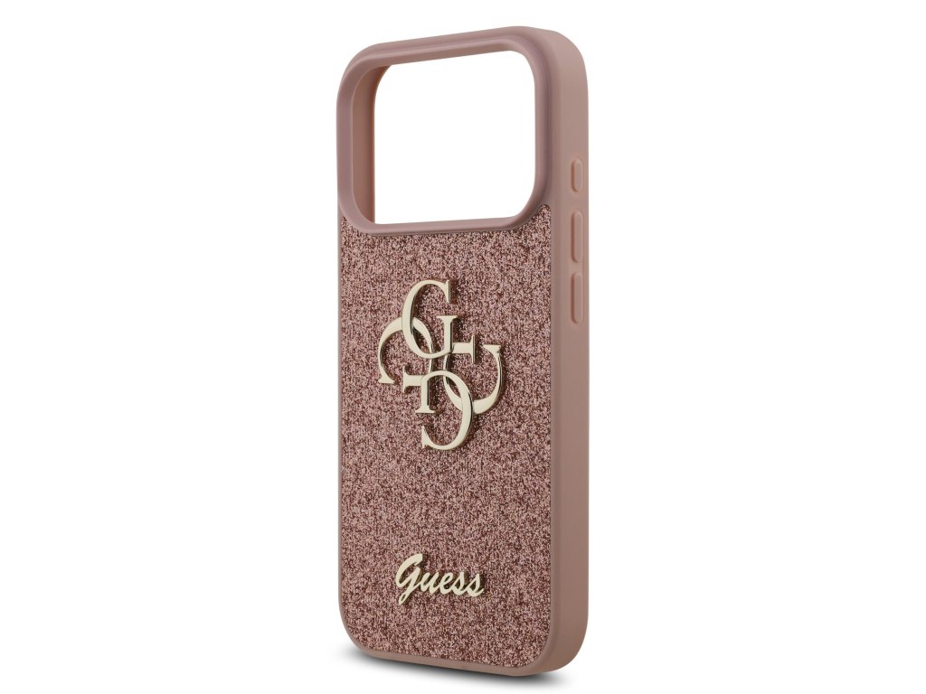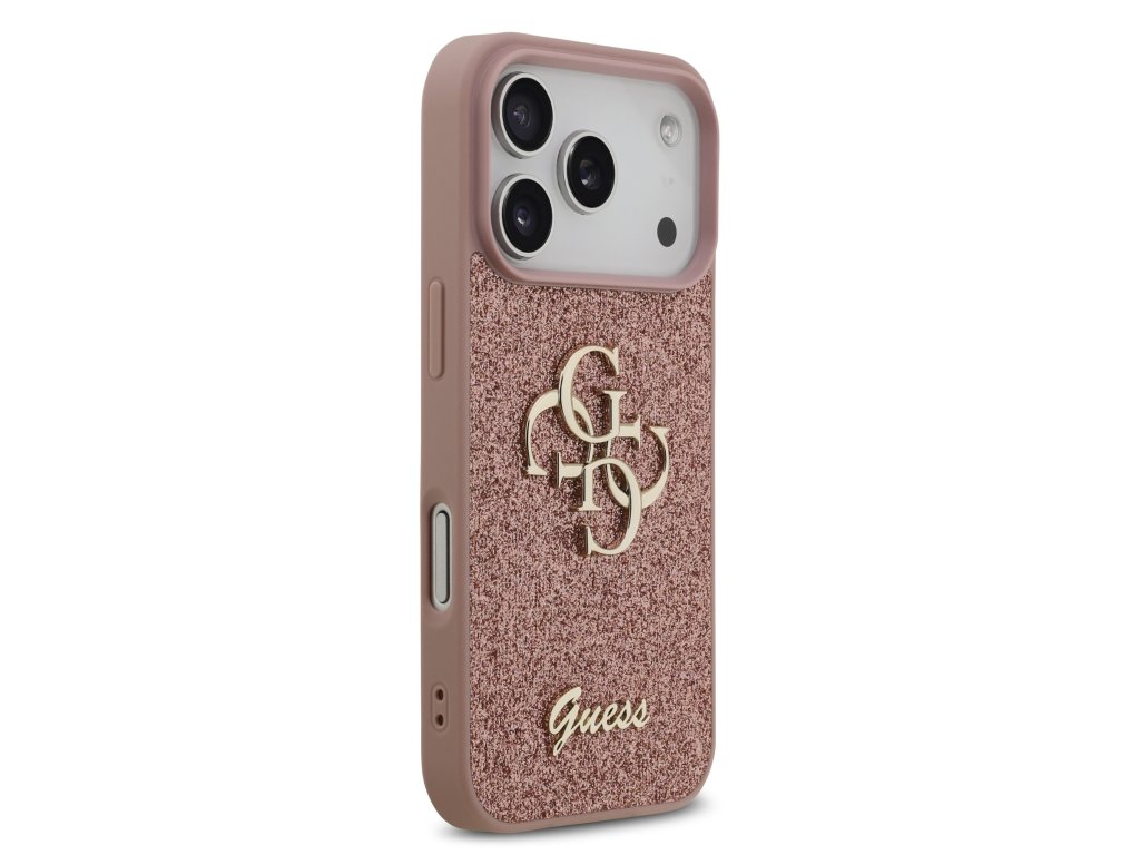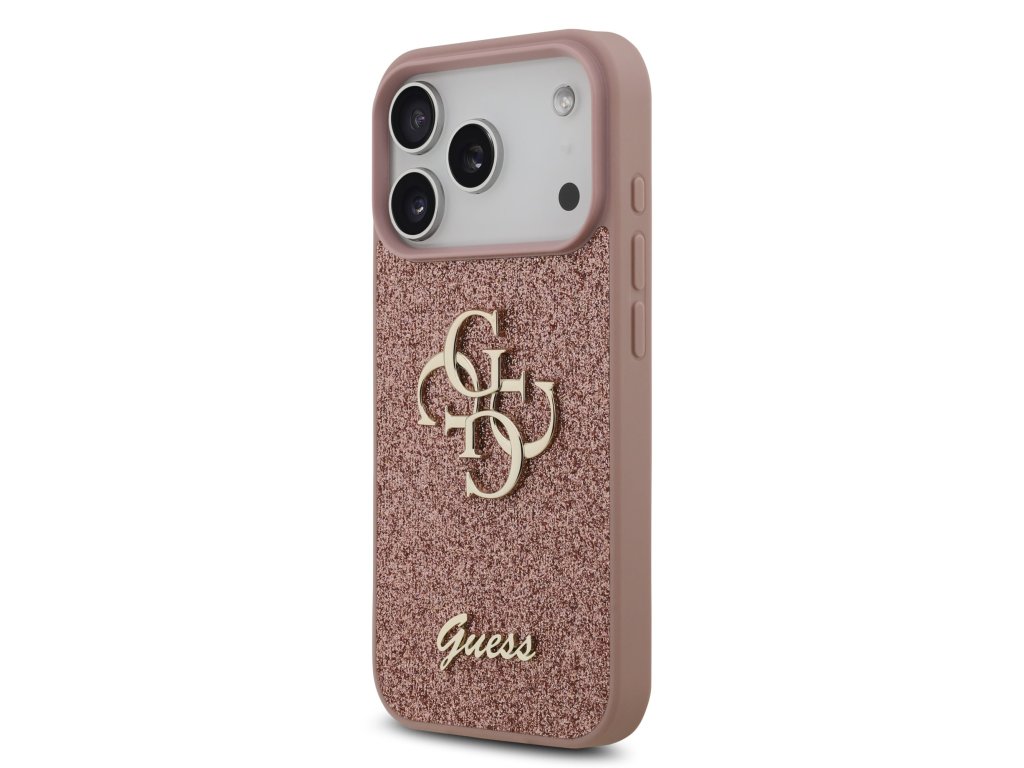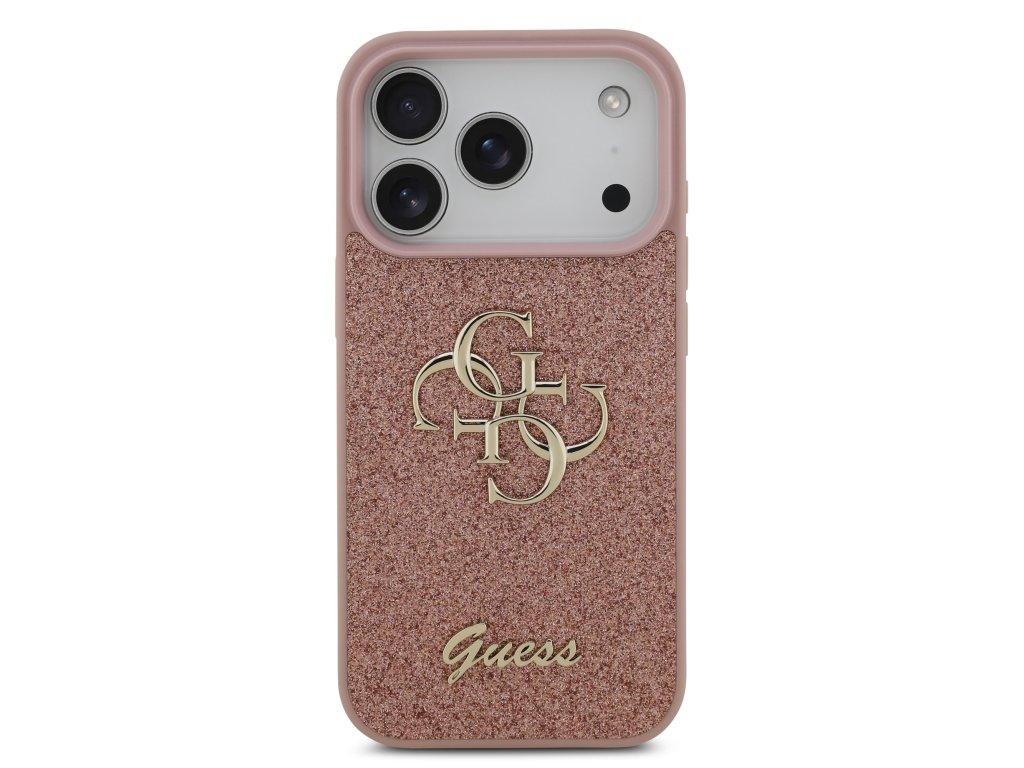 Guess PU Fixed Glitter 4G Metal Logo Zadní Kryt pro iPhone 17 Pro Pink