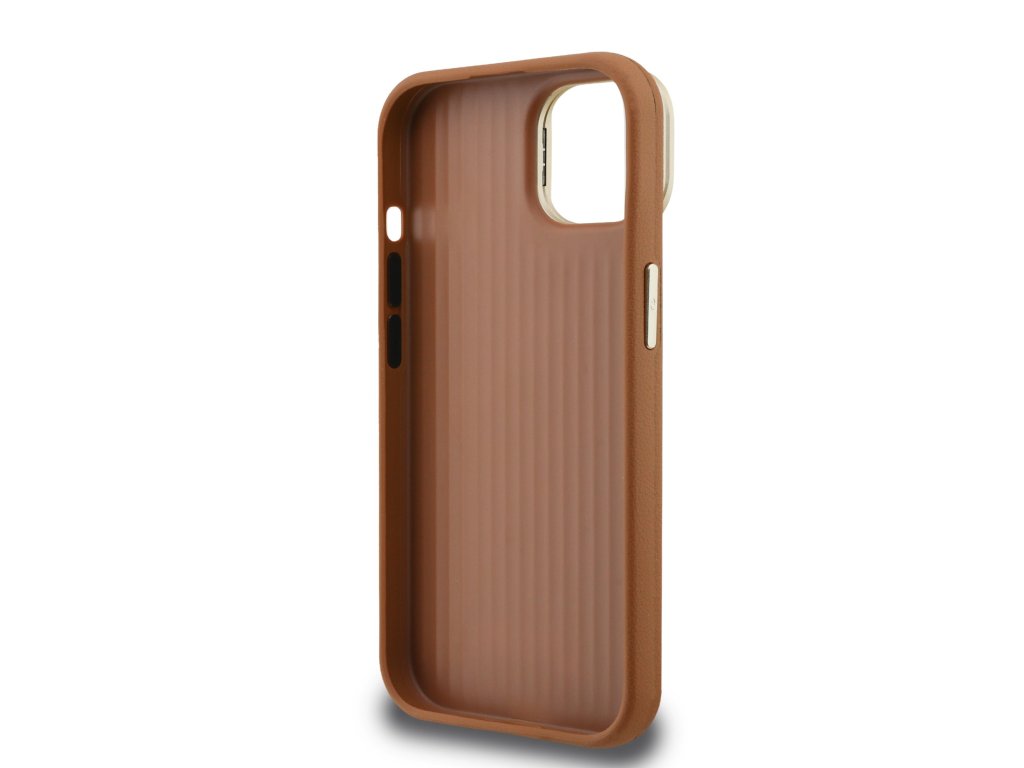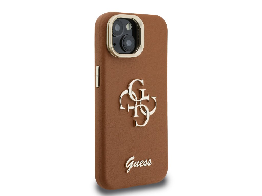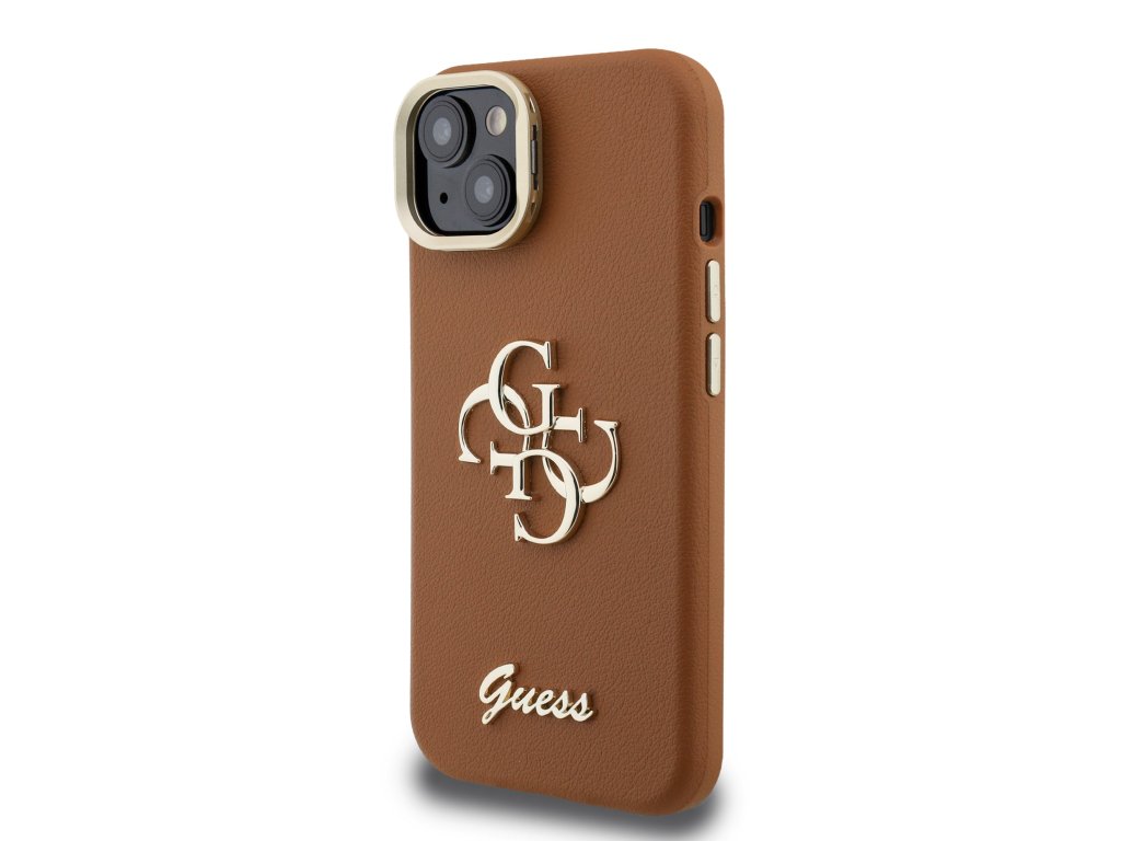 Guess PU Grained 4G Logo Stand Camera Frame Zadní Kryt pro iPhone 14 Brown